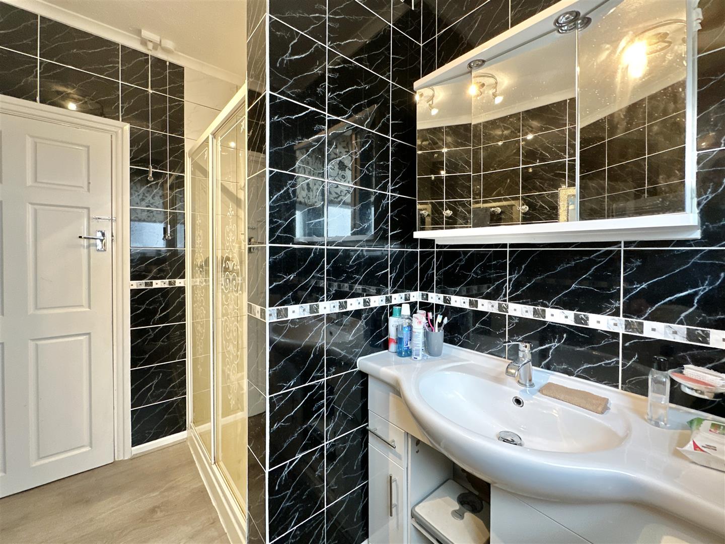 Beyond this is a further well-proportioned double bedroom with large built-in wardrobes and views over the rear garden, alongside a versatile third bedroom which would work equally well as a home office or study. A centrally positioned, modern and high-quality shower room serves the accommodation.