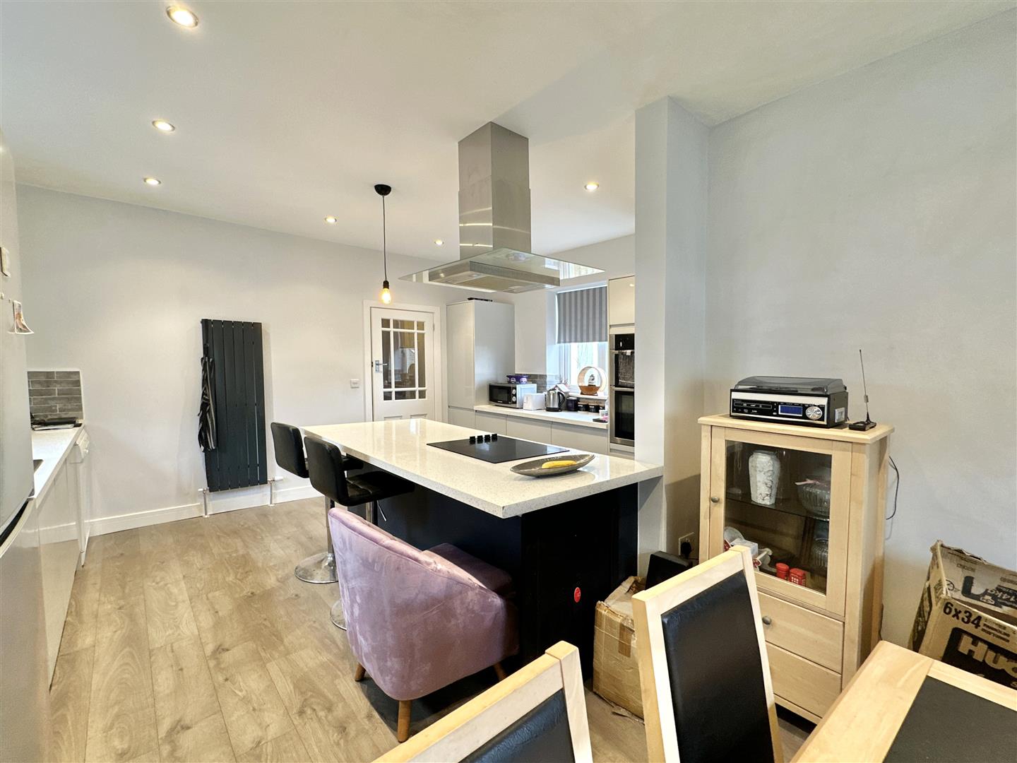 To the rear, the property truly comes into its own. The impressive kitchen/diner forms the heart of the home - a bright, modern and sociable space, perfectly suited to both family life and entertaining. Beyond the kitchen/diner is a large and highly versatile utility room, leading on to an additional living area currently used as a garden room. This flexible space enjoys doors opening directly onto the rear garden, seamlessly connecting indoor and outdoor living.