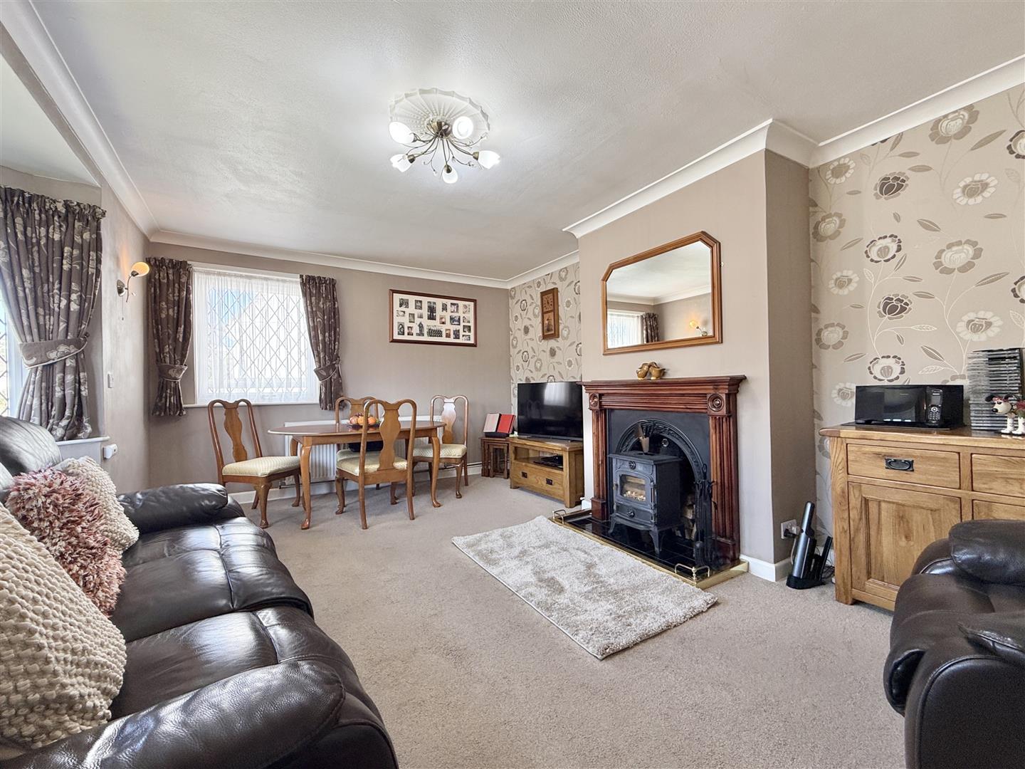 Occupying a generous plot, the property immediately impresses with its large driveway, providing ample off-road parking, and its well-maintained front garden, which is thoughtfully landscaped with a central lawn, mature planting and attractive pathways leading to the entrance. The charming bay window also gives plenty of curb appeal. To the rear, a south-easterly facing garden has been designed for ease of enjoyment, featuring spacious patio areas, raised beds and a useful external utility space, perfect for practical day-to-day living and providing ample storage.