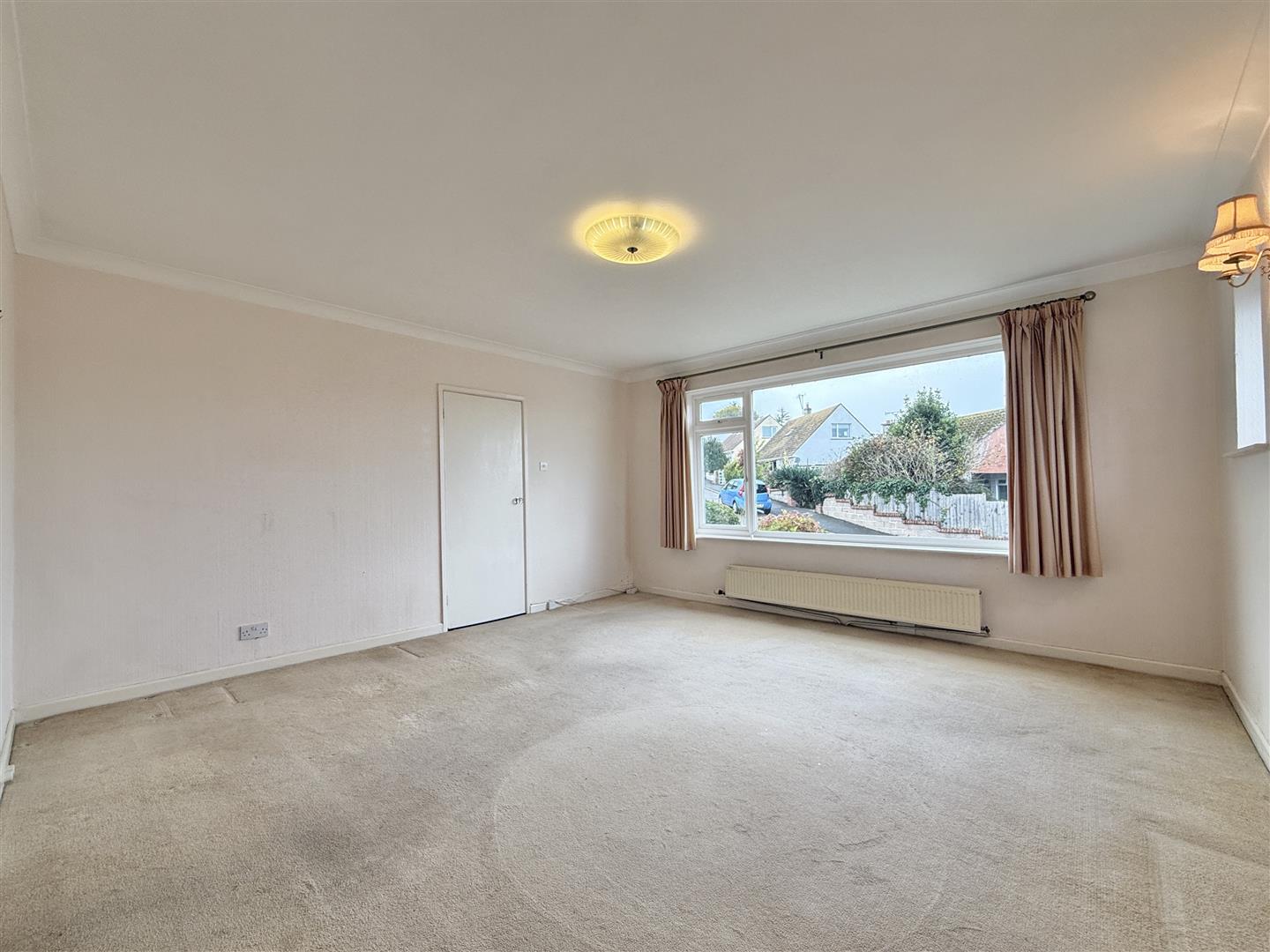 Step inside through the inner porch into a spacious central hallway, providing access to all principal rooms. To the immediate left, the large dual-aspect living room enjoys lovely outlooks over the street scene and flows seamlessly through to the bright and well-proportioned kitchen. While now a little dated, the kitchen is fully functional and offers ample cupboard and worktop space, making it an excellent base for modernisation. Beyond the kitchen, a versatile sun room links the home beautifully with the garden, creating a pleasant space for dining, hobbies, or simply relaxing. The bungalow offers two generous double bedrooms with attractive outlooks over the gardens-one to the front and one to the rear. The rear bedroom benefits from a built-in wardrobe with sliding doors, adding excellent storage. A central family bathroom completes the accommodation and would now benefit from updating to suit modern tastes.