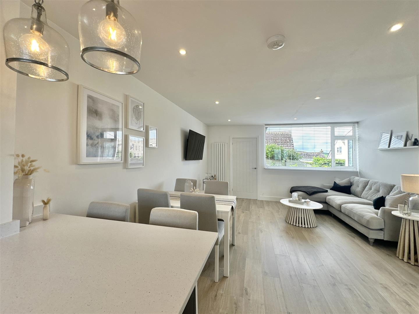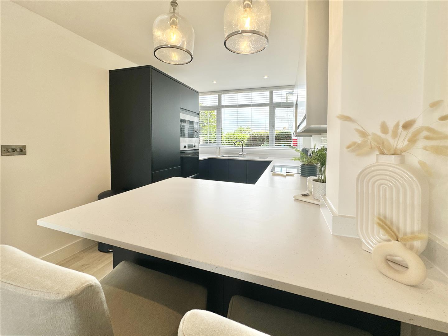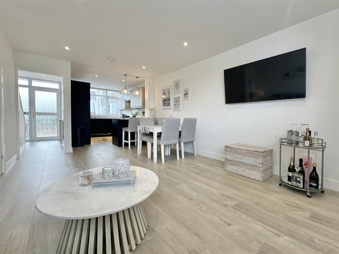 There is a pretty, low maintenance front garden which gives access to the spacious, light-and-bright entrance hall, with a good size open plan living space beyond. To the front of the ground floor there is a contemporary and high-spec kitchen with small breakfast bar separating it from the living space. Fully equipped with plenty of cupboards and worktop areas, integrated fridge freezer, mid-height oven and inset electric hob. The living space is generously sized, neutrally presented with calming tones and representing a 'blank canvas' for a new owner to add their particular style. To the rear of the ground floor there is a useful utility room with further worktop space and access out to the rear garden.