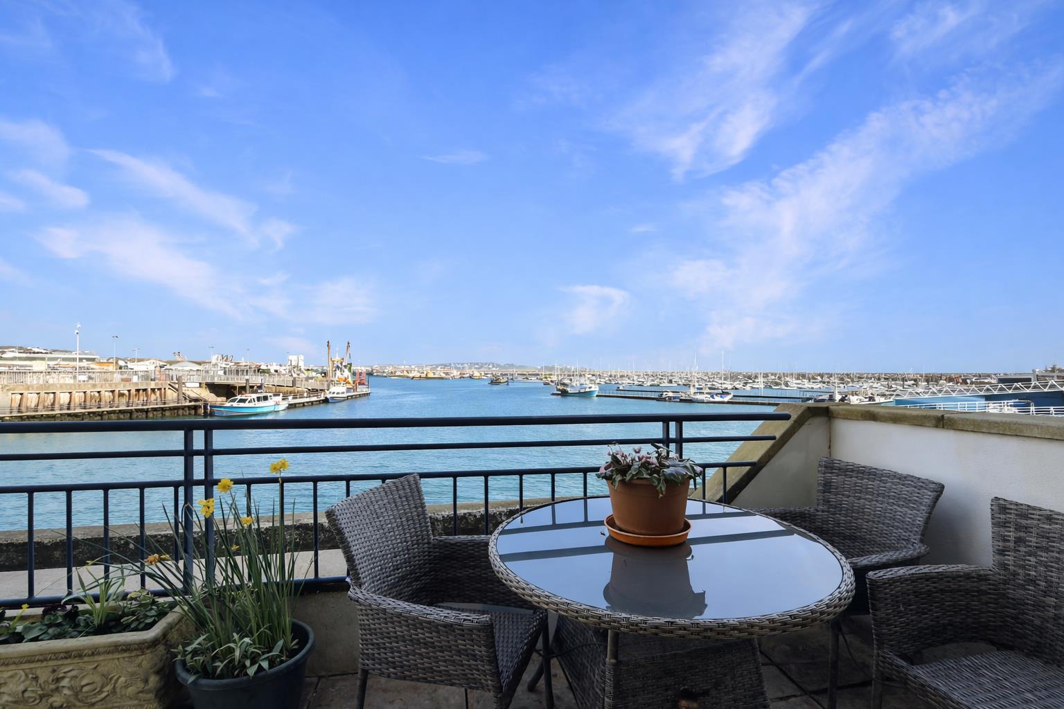 Number 9 is among the largest apartments within the development and occupies a prime ground floor position, located to the right-hand side when viewed from the seaward aspect. This enviable placement allows for a particularly strong connection to the waterfront, with direct access to outdoor space and uninterrupted sightlines across the harbour.