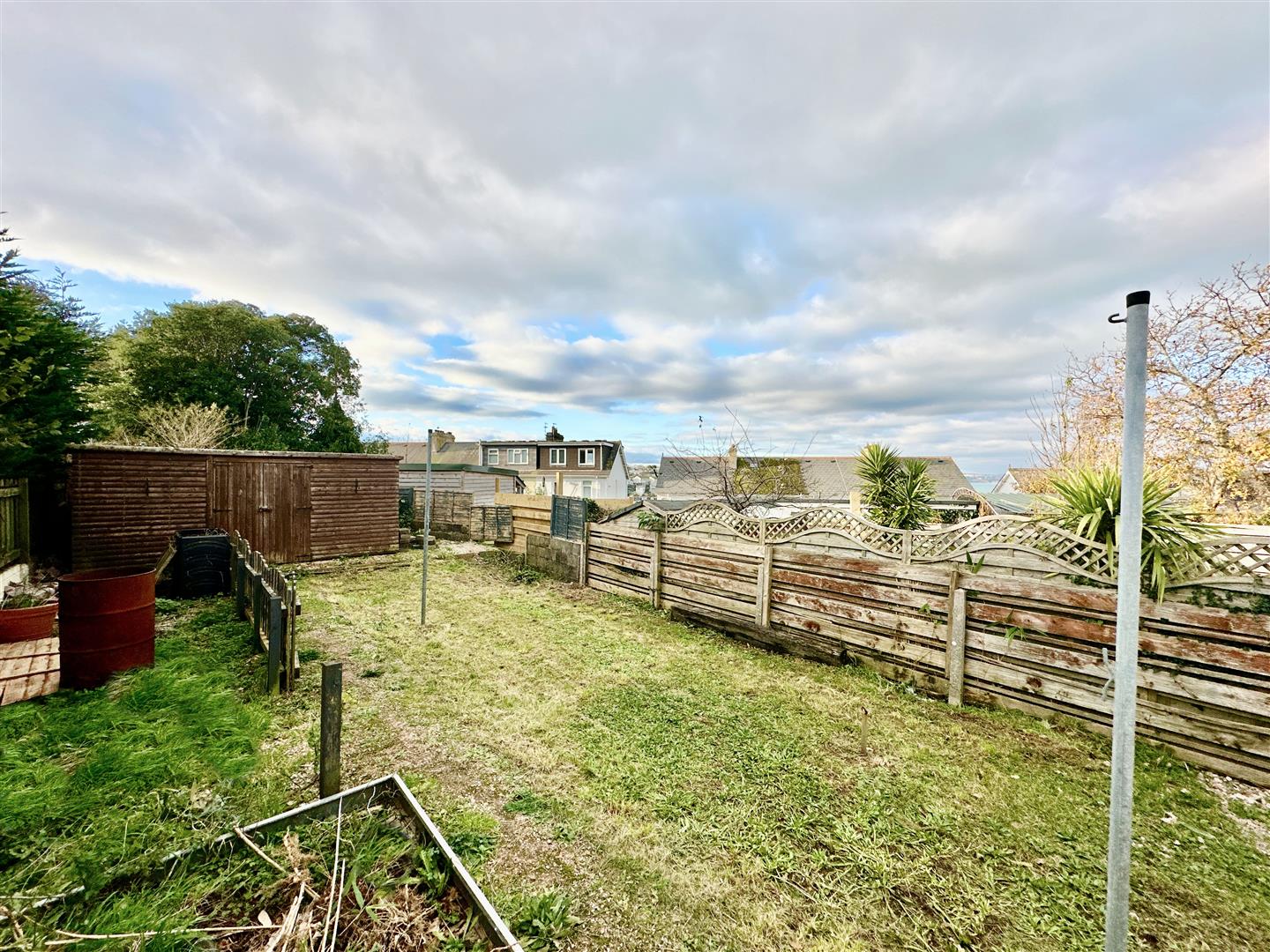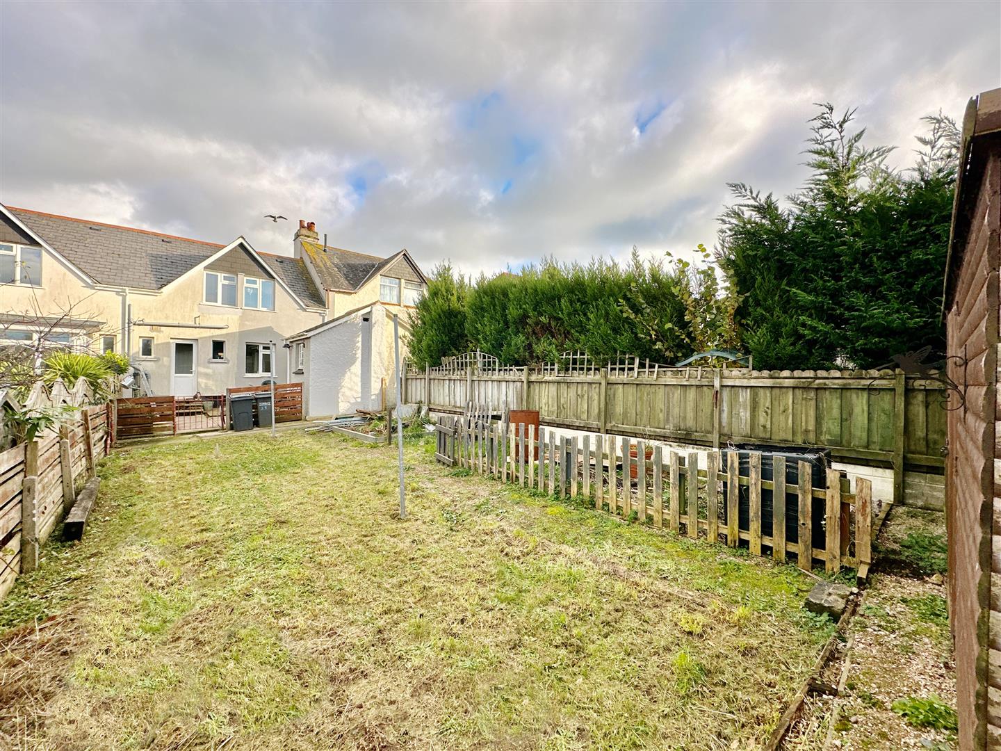 - Rear patio for afternoon sun, garden store, and a generous lawn.