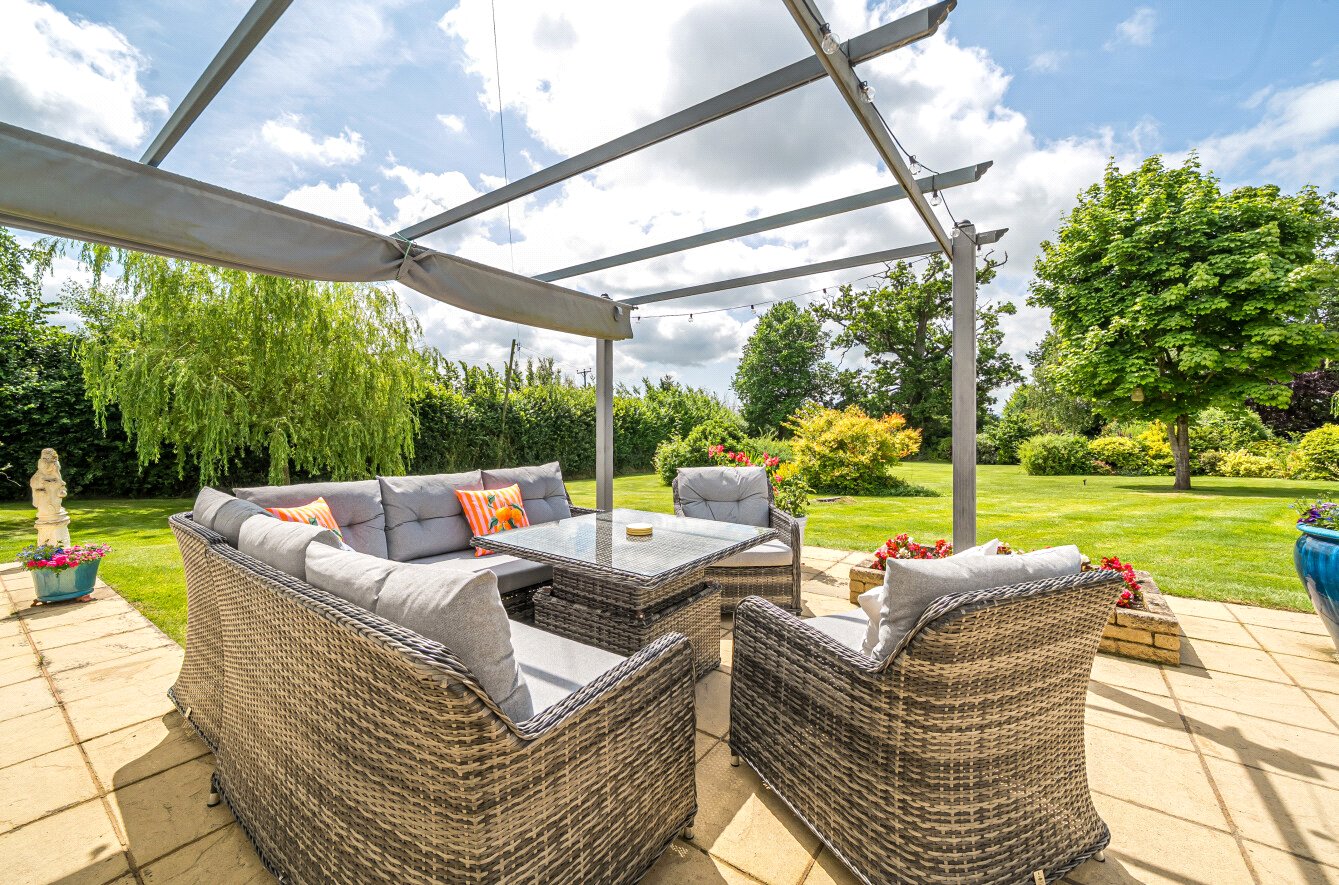 The gardens are a real feature of the property. There are well-kept lawns on either side of the drive, stocked with mature trees and shrubs, along with a large private patio and a log store. To the left of the driveway is an orchard and a stable block. The rear garden offers privacy and is mainly laid to lawn, with mature shrubs, trees, an ornamental pond, and another patio area.
