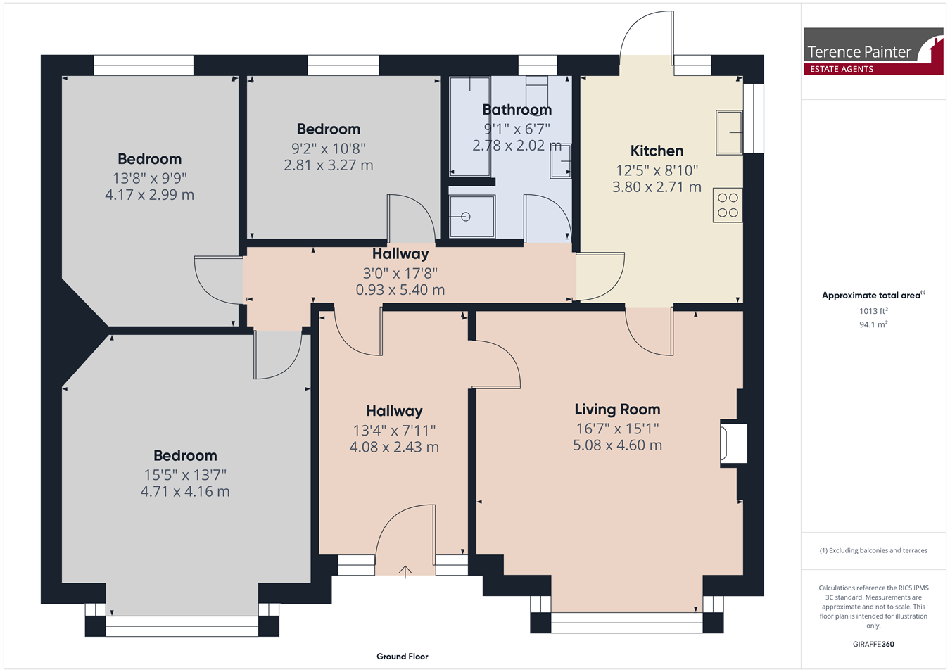 5.40m x 0.93m (17' 9" x 3' 1") There is an access hatch to the loft space and doors leading off to the kitchen, bathroom and bedrooms.