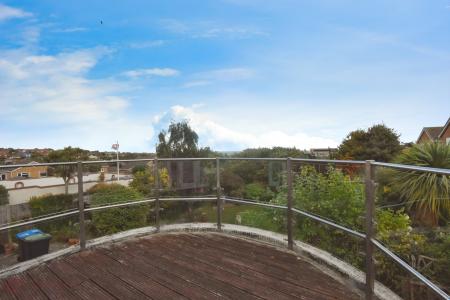 Inside, the accommodation is well laid out, featuring a lounge that opens into a bright conservatory, a separate kitchen, and a dedicated dining room, giving plenty of versatile living space. Upstairs, the main bedroom benefits from access to a balcony where you can enjoy far-reaching sea views, while the additional bedrooms provide ample space for family or guests.