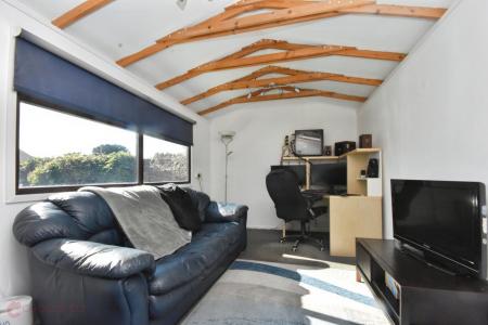 Outside, the property boasts a sunny rear garden, ideal for children or outdoor dining, complete with a shed fitted with electricity perfect for storage or a small workshop. There is side access from both sides, along with a driveway, off-road parking, and a garage, providing plenty of space for vehicles.