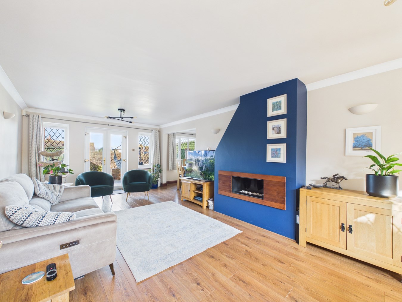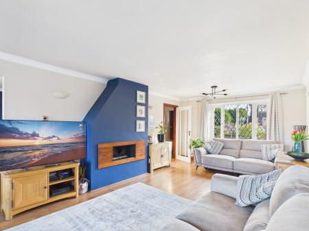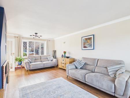 7.38m x 3.64m (24' 3" x 11' 11") The double aspect living room benefits from a double glazed window to front and double glazed windows and doors to rear garden, feature fireplace, television point, radiator and wooden flooring.