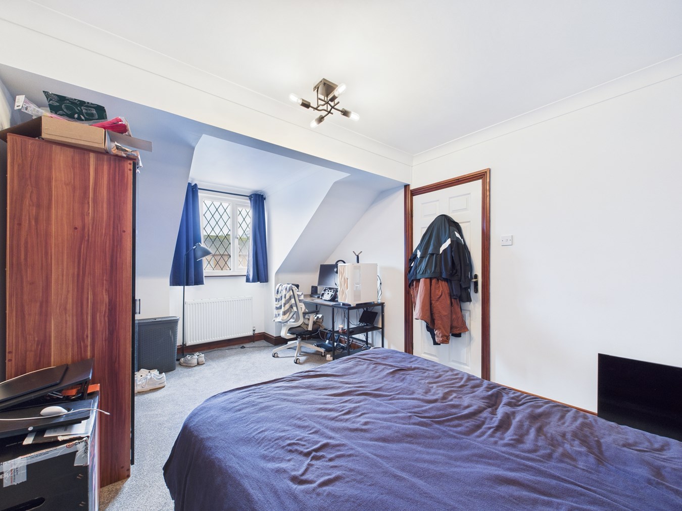 3.60m x 2.94m (11' 10" x 9' 8") Bedroom four features a double glazed window to front, built-in wardrobe, radiator and carpeted flooring.