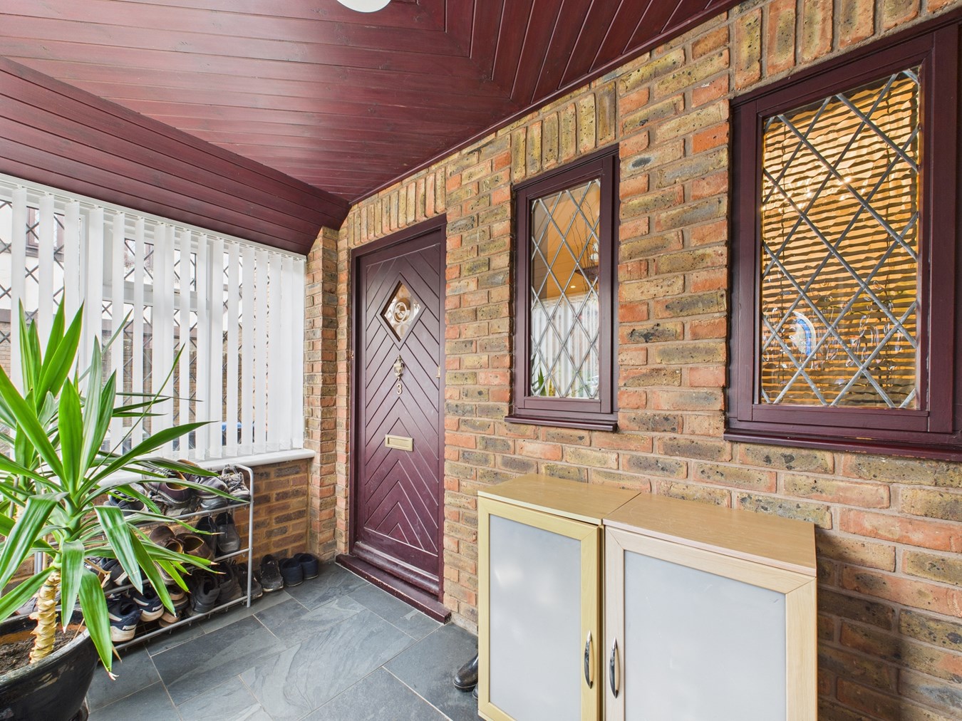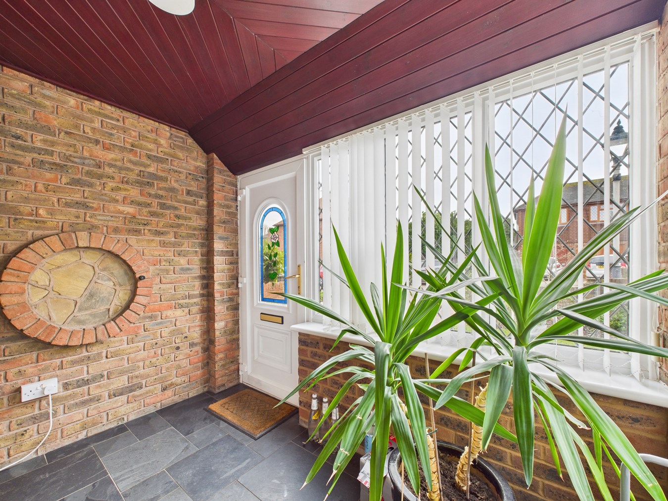 2.98m x 1.79m (9' 9" x 5' 10") Entrance into the property is gained via a UPVC stained glass door, the porch has two double glazed windows, exposed brick walls and tiled flooring.