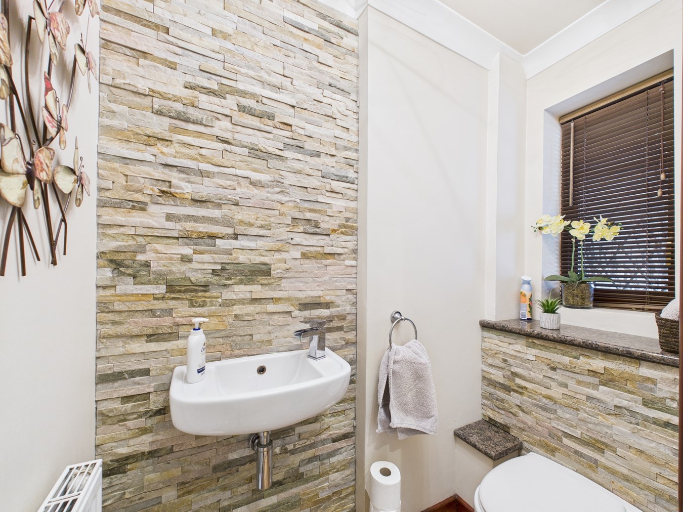 1.57m x 0.91m (5' 2" x 3' 0") Including a double glazed frosted window to front, low level w.c, wash hand basin, radiator and wooden flooring.