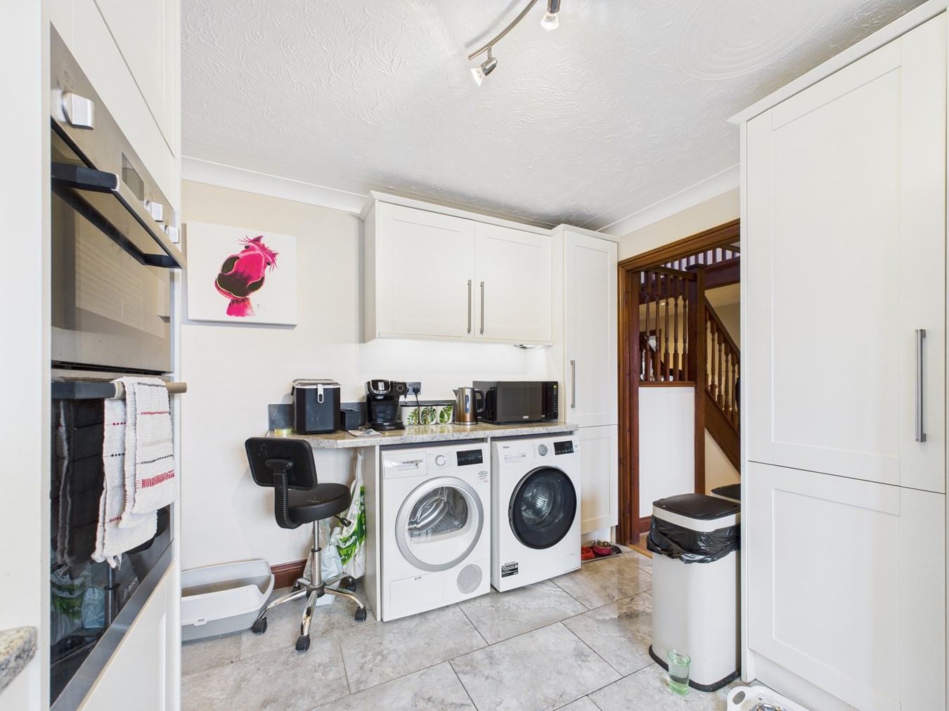 4.67m x 3.07m (15' 4" x 10' 1") The kitchen benefits from a double glazed window overlooking the rear garden, high and low level kitchen units, integrated appliances including: dishwasher, electric hob with extractor hood over and two electric ovens. There is a space and plumbing for washing machine, dryer and fridge-freezer. Ceramic sink unit inset to kitchen countertops, gas fired boiler, door to rear garden and tiled flooring.