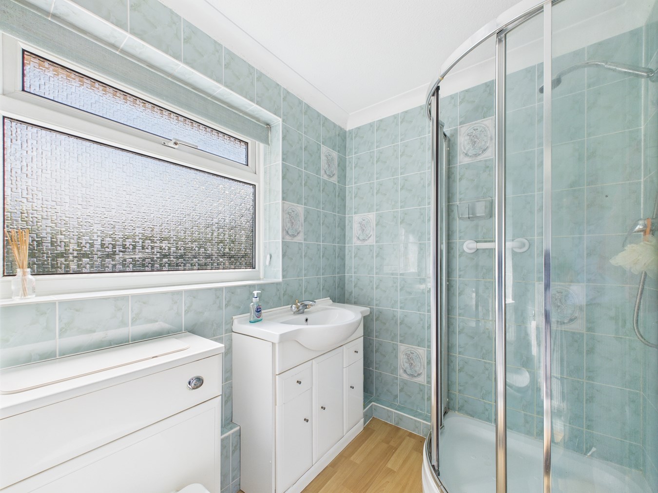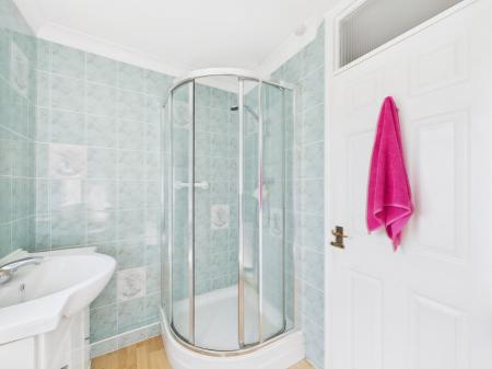 2.17m x 1.67m (7' 1" x 5' 6") The shower room has a double glazed frosted window to rear, corner shower cubicle, low level w.c, wash hand basin, radiator, tiled walls and laminate flooring.
