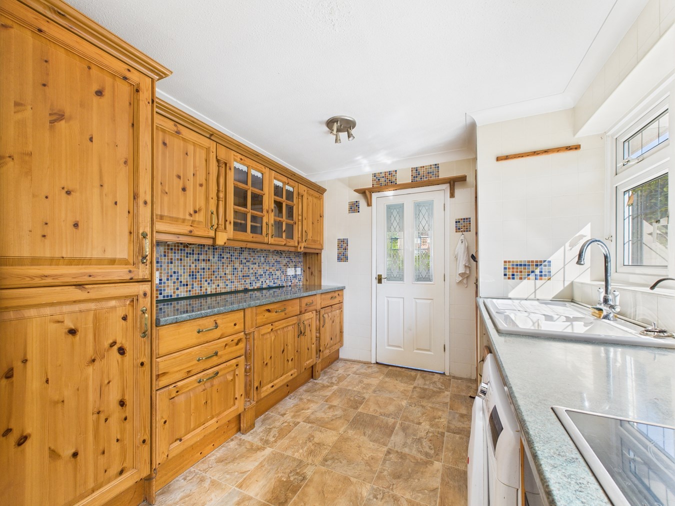 4.60m x 2.70m (15' 1" x 8' 10") The kitchen features a double glazed window overlooking the rear garden, double glazed frosted UPVC door to rear garden, high and low level fitted kitchen units, integrated fridge-freezer and electric oven with gas hob and extractor hood over. There is space and plumbing for a washing machine and dishwasher, ceramic sink unit inset to countertops, tiled walls and flooring.