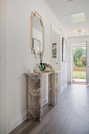 The ground floor benefits from underfloor heating with thermostat control, while recessed down lighting and USB-integrated sockets are fitted throughout. The layout offers bright and versatile living space, ideal for both family life and entertaining. Upstairs, you'll find four generous bedrooms and two stylish bathrooms.