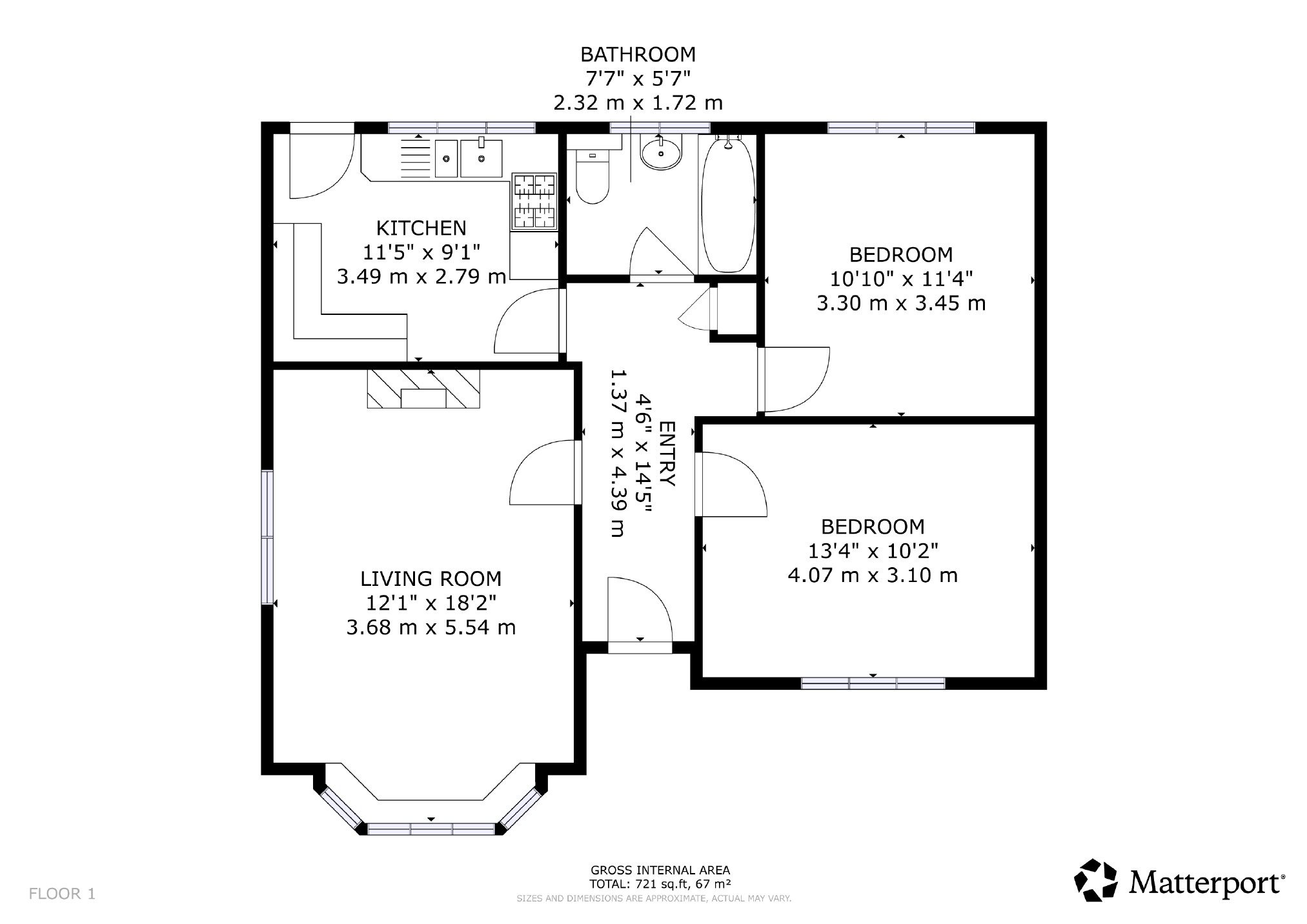 - Two bedrooms