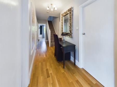 6.75m x 1.45m (22' 2" x 4' 9") Built-in cupboard housing meters. Engineered oak wood flooring. Two built-in storage cupboards. Understairs storage recess.