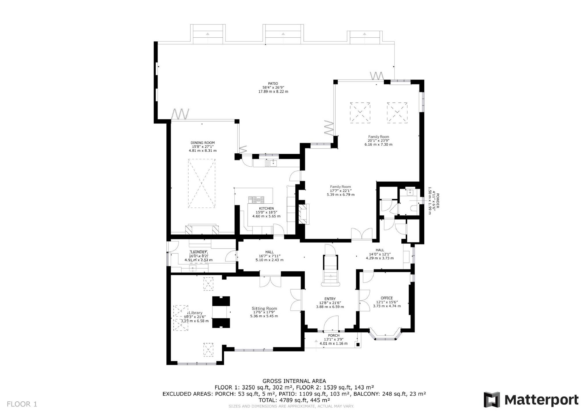 Additional living areas include a dual-aspect sitting room and a characterful library/study divided by brick arches and a double-sided fireplace.