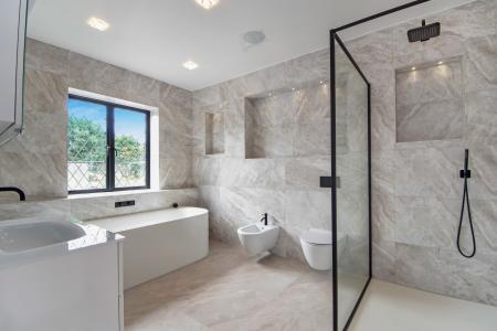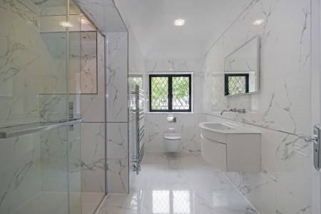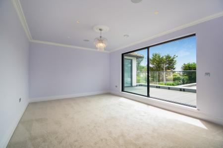 Upstairs, four luxurious en suite bedrooms include a principal suite with roof terrace access and a stunning bathroom featuring a walk-in rain shower and freestanding bath.