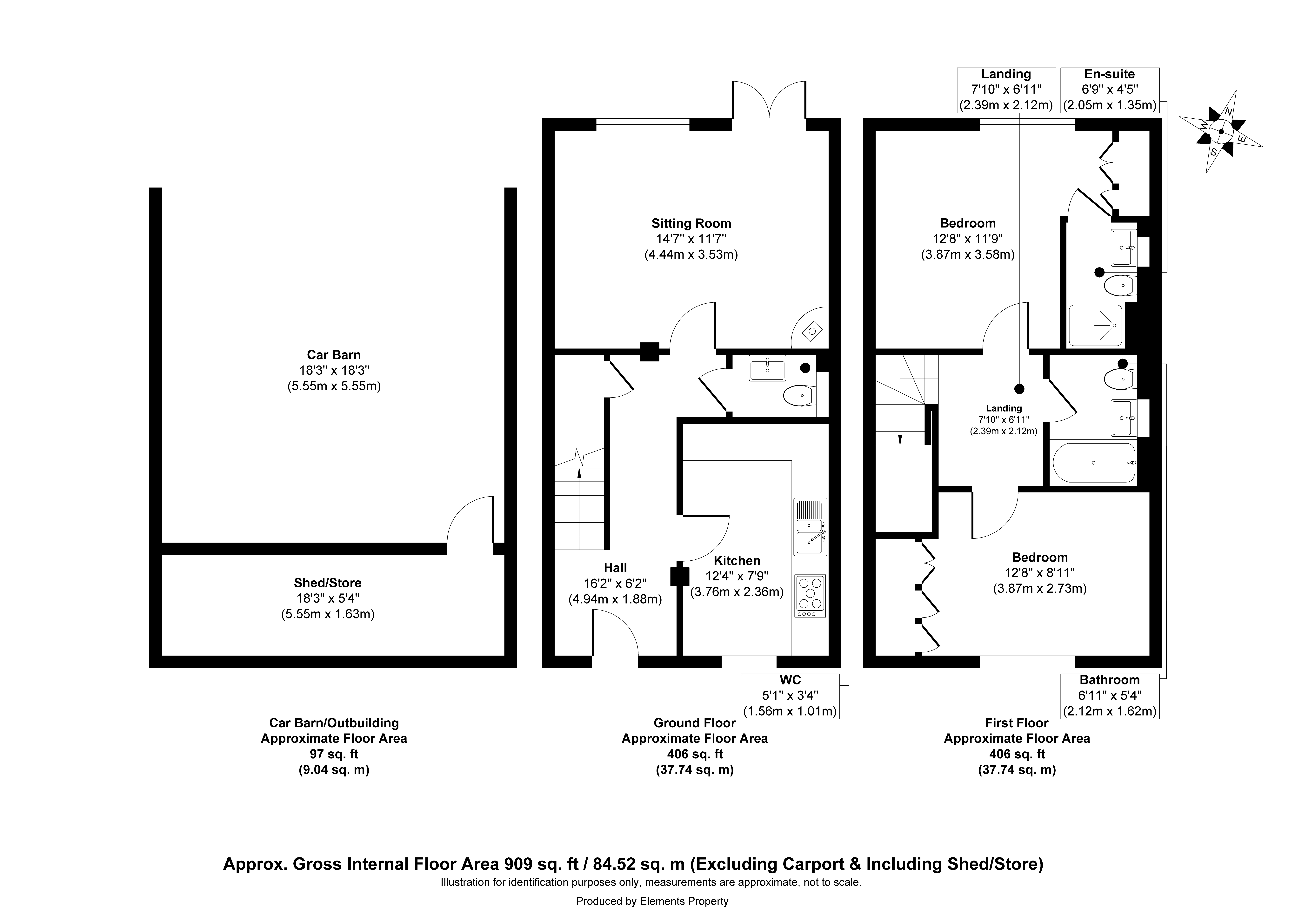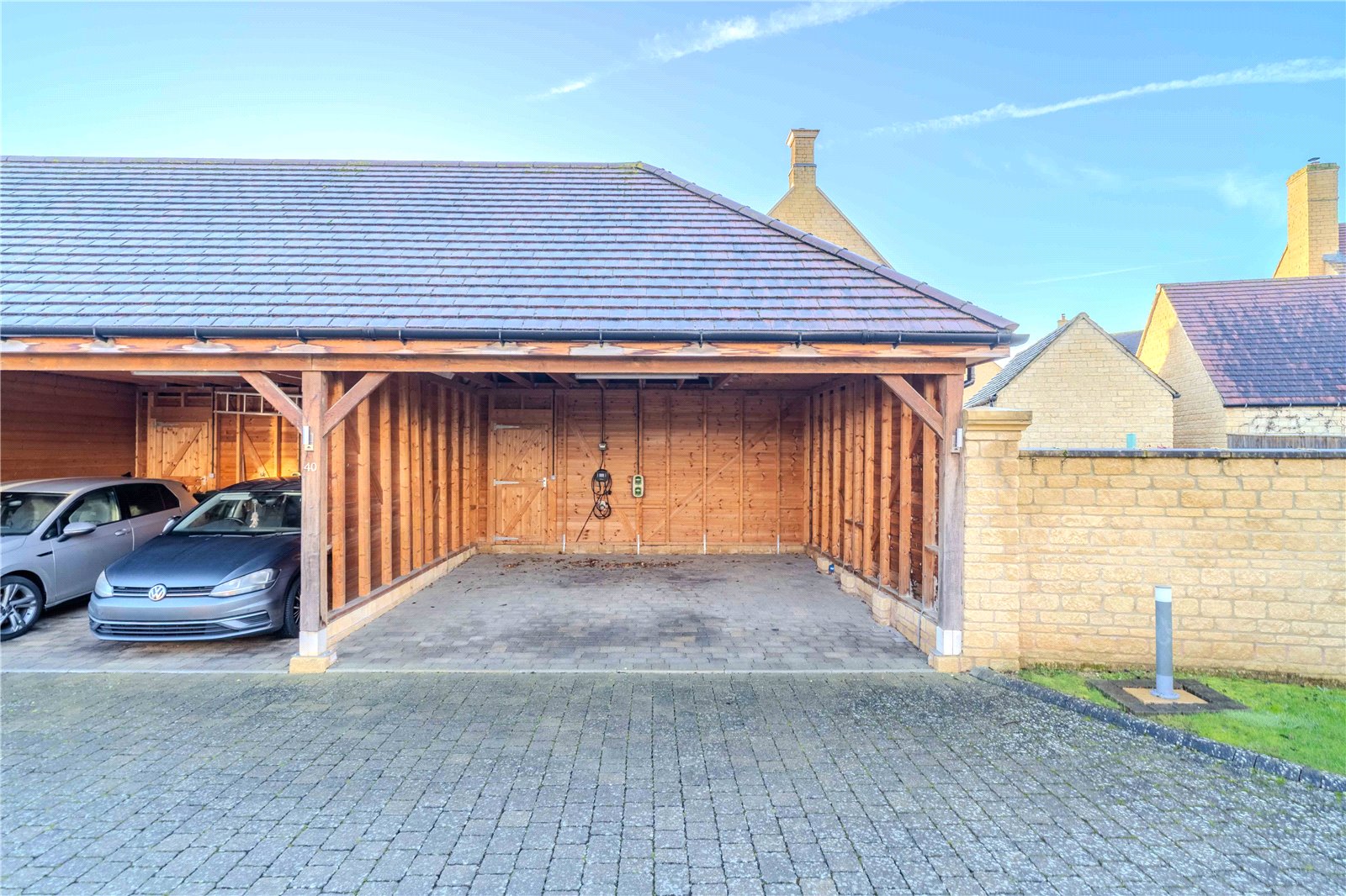 The secure garden is enclosed on all sides by timber fencing and is principally laid to lawn with a patio immediately to the rear of the house. A path leads to the Garden Store and Double Car Barn – with parking for two good sized cars, power, light and an electric car charging point.