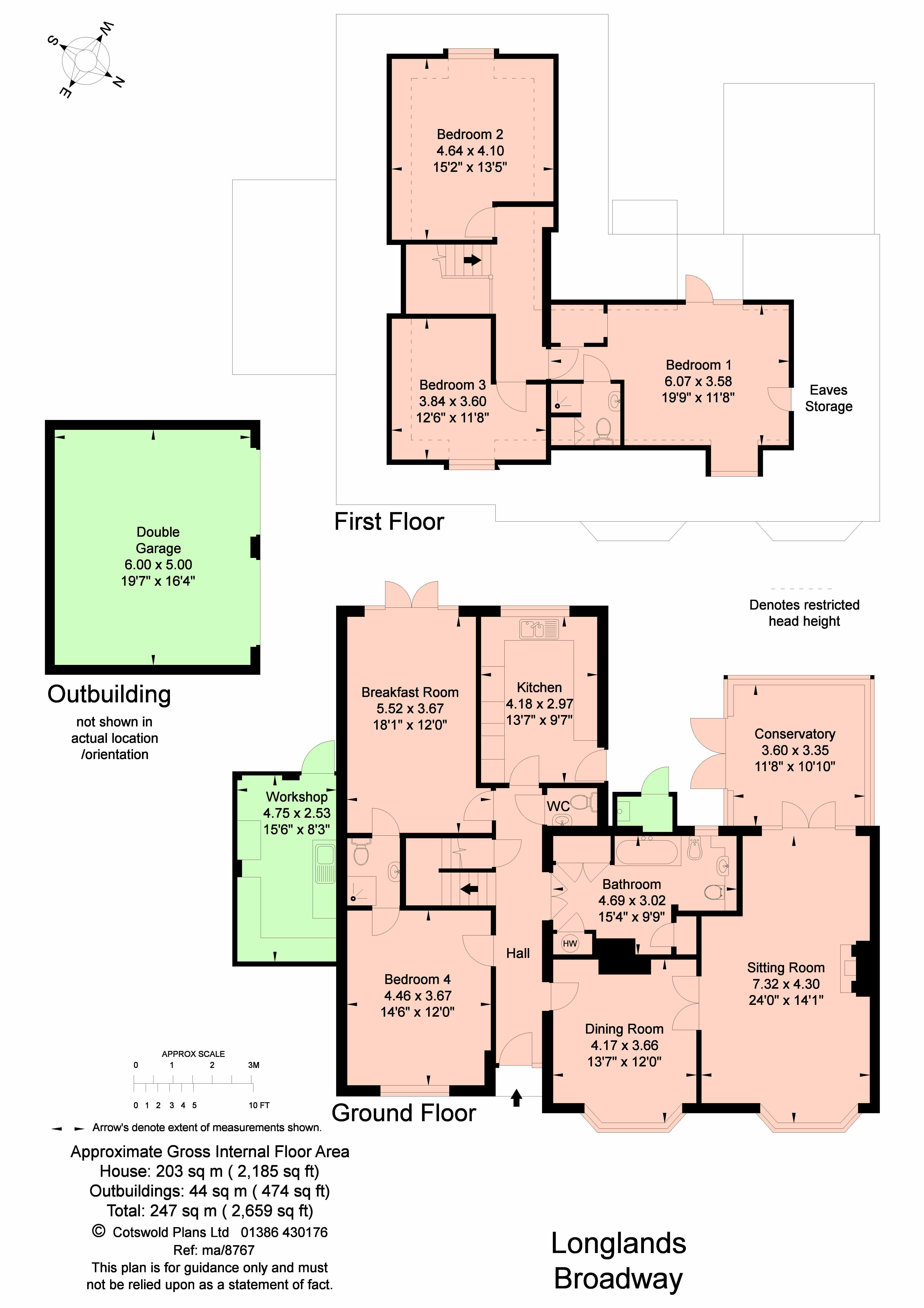 - Detached double garage and workshop