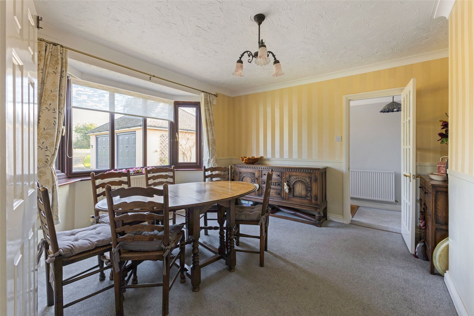 Longlands is a well presented 4-bedroom detached property, constructed of brick under render, situated at the end of a no through road on the edge of this popular village. The versatile accommodation spans approximately 2185 square feet across two floors. The ground floor features an entrance hall with a cloakroom, leading to a dining room with a bay window that overlooks the front garden. There is a spacious dual aspect sitting room with a bay window, a stone fireplace enclosing a gas fire, and a set of French doors that lead to the conservatory which benefits from far reaching countryside views to the south-west. The kitchen is well appointed with a range of base and wall units, space for a fridge/freezer, plumbing for a washing machine and a dishwasher, a Belling cooker with gas hob, and a door that provides access to the rear garden. The breakfast room is a versatile space with sliding doors that open to the rear garden. It also includes a ‘Jack and Jill’ ensuite shower room, which can be accessed from both the breakfast room and the ground floor bedroom. In addition to this, there is a large family bathroom with a shower over bath. The principal bedroom is situated on the first floor and includes an ensuite shower room, a variety of storage cupboards, and a balcony offering uninterrupted views. Additionally, there are two further double bedrooms on this level.