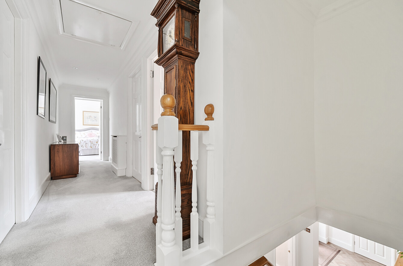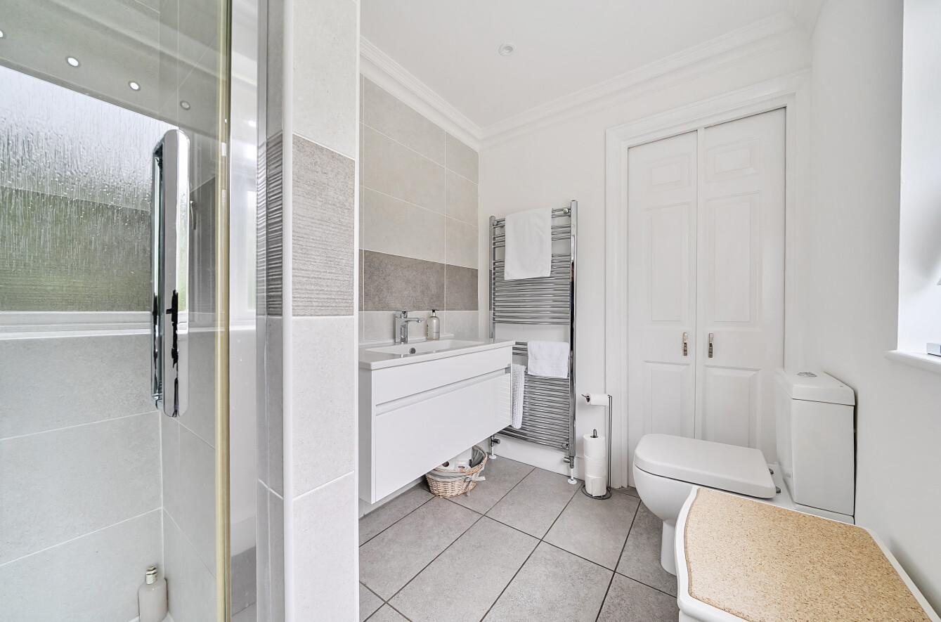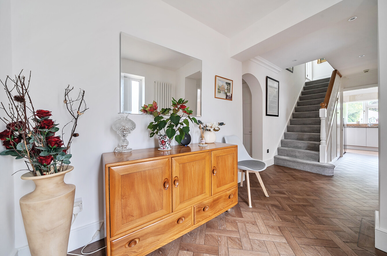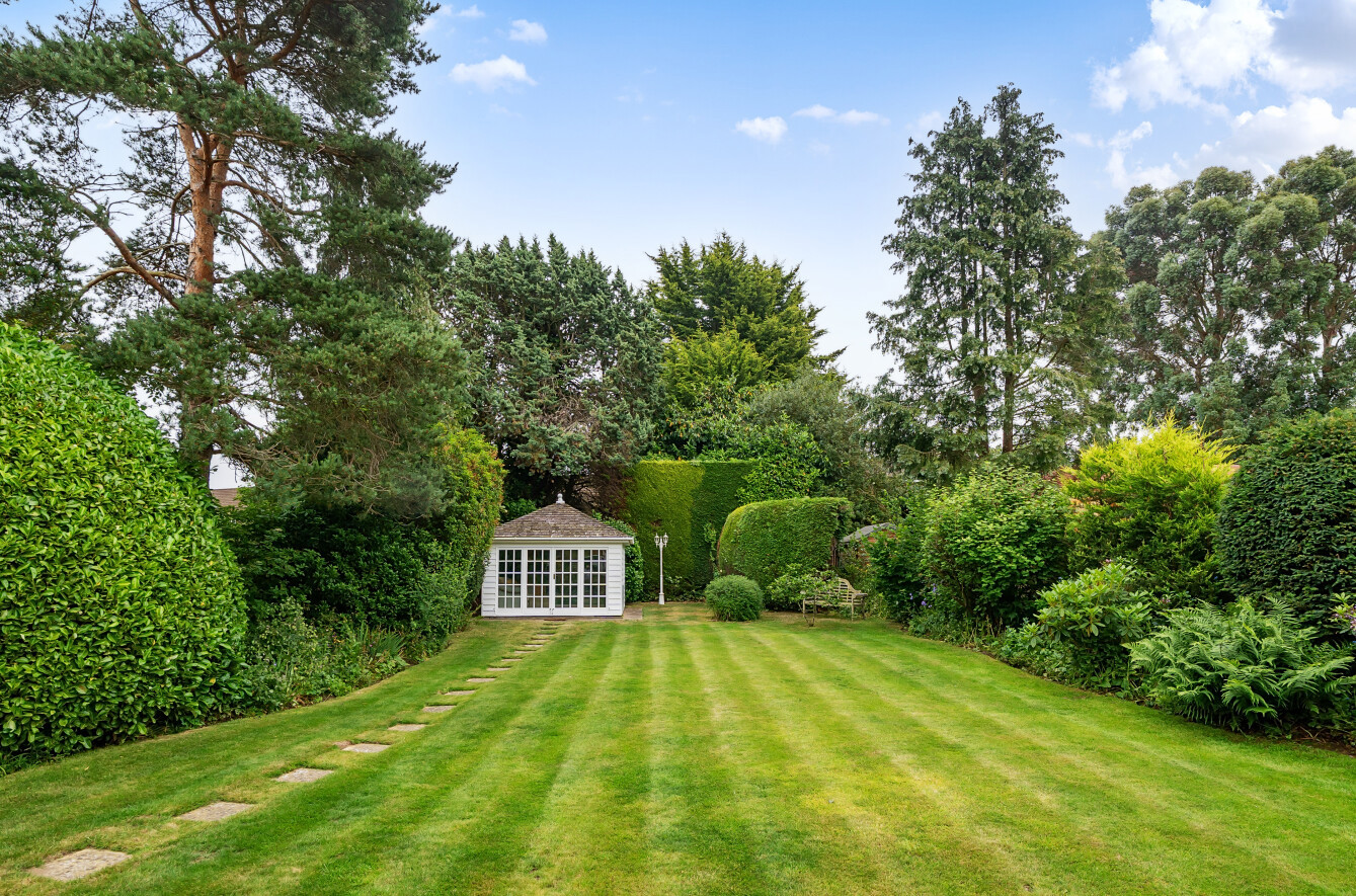 The stunning rear garden measures approximately 110' long. With a secluded paved seating area to the immediate rear of the property, the remainder of the garden is laid to lawn with well stocked flower and shrub borders and a beautiful backdrop of mature trees creating a tranquil space to sit and enjoy the outdoors. To the far end is a pretty wooden summerhouse.