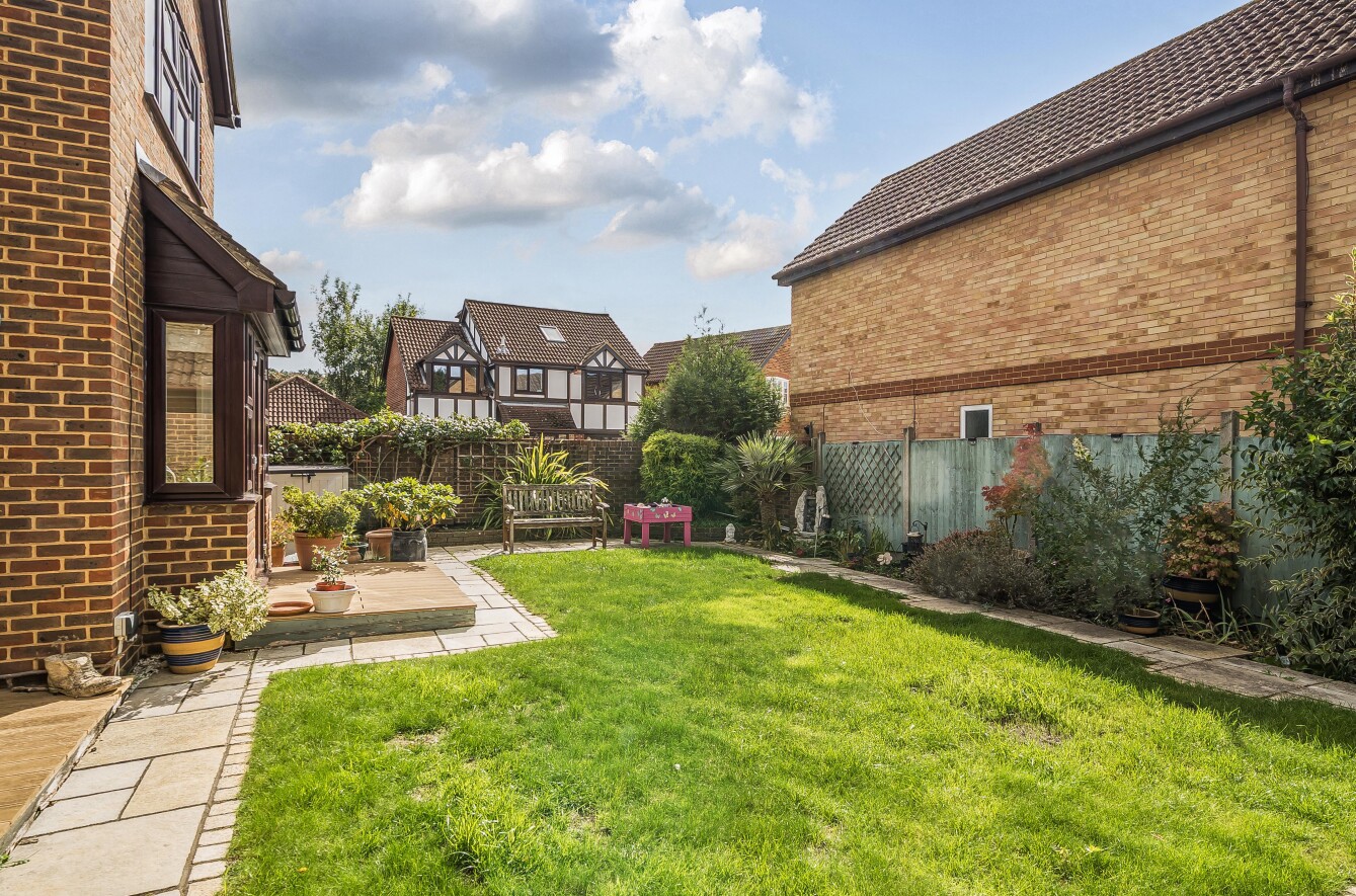 The manageable rear garden has a pleasant south westerly aspect with two seating areas. The remainder is laid to lawn with well stocked flower and shrub borders.