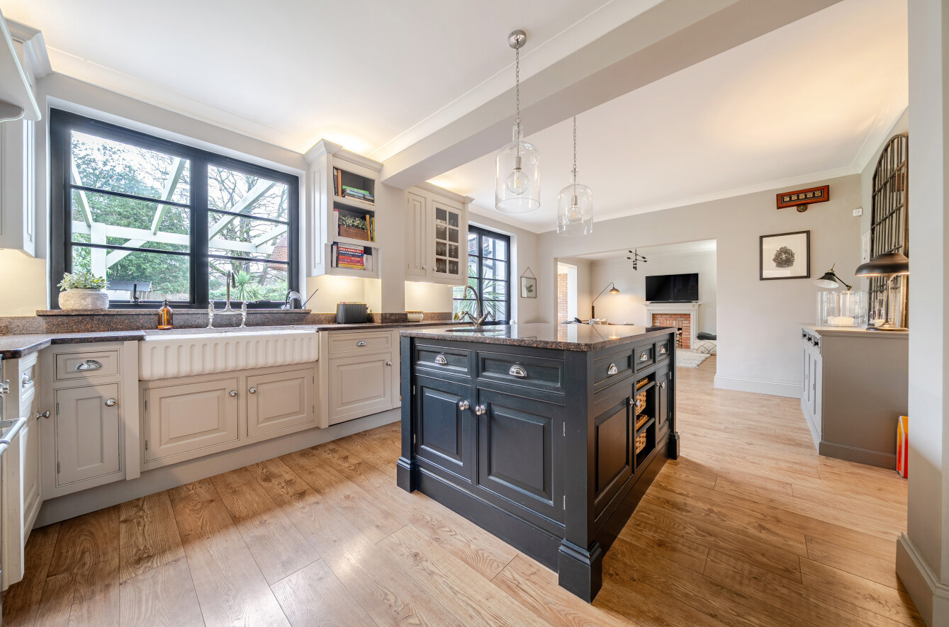Across the rear of the house is a stunning open-plan kitchen, breakfast, dining and reception space, all flowing seamlessly together. Thoughtful and careful curation has created a beautiful heart to the home, perfectly balancing a warm, traditional feel with modern touches, including Crittall-style windows.