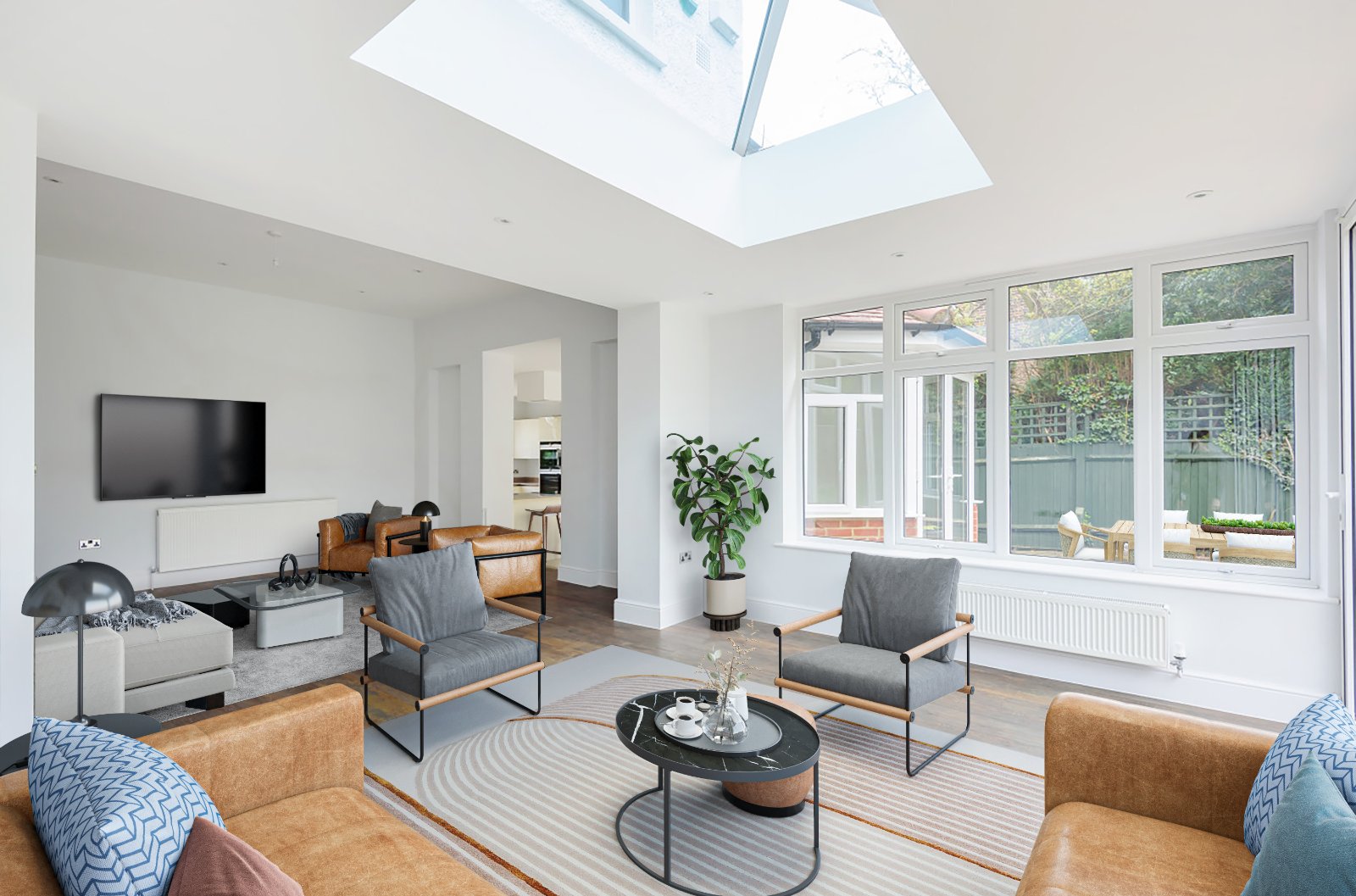 Entering the property you will find a welcoming and spacious hallway with downstairs bathroom which leads through to a stunning reception room with bi-fold patio doors which open up onto the rear garden. Additional features include wood flooring and roof light which allows light to flood into this room.