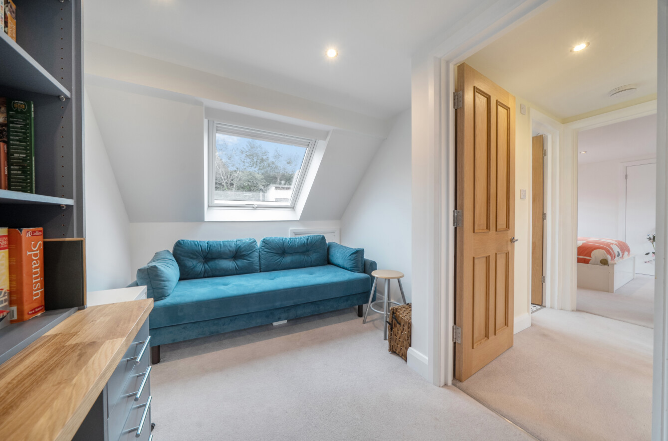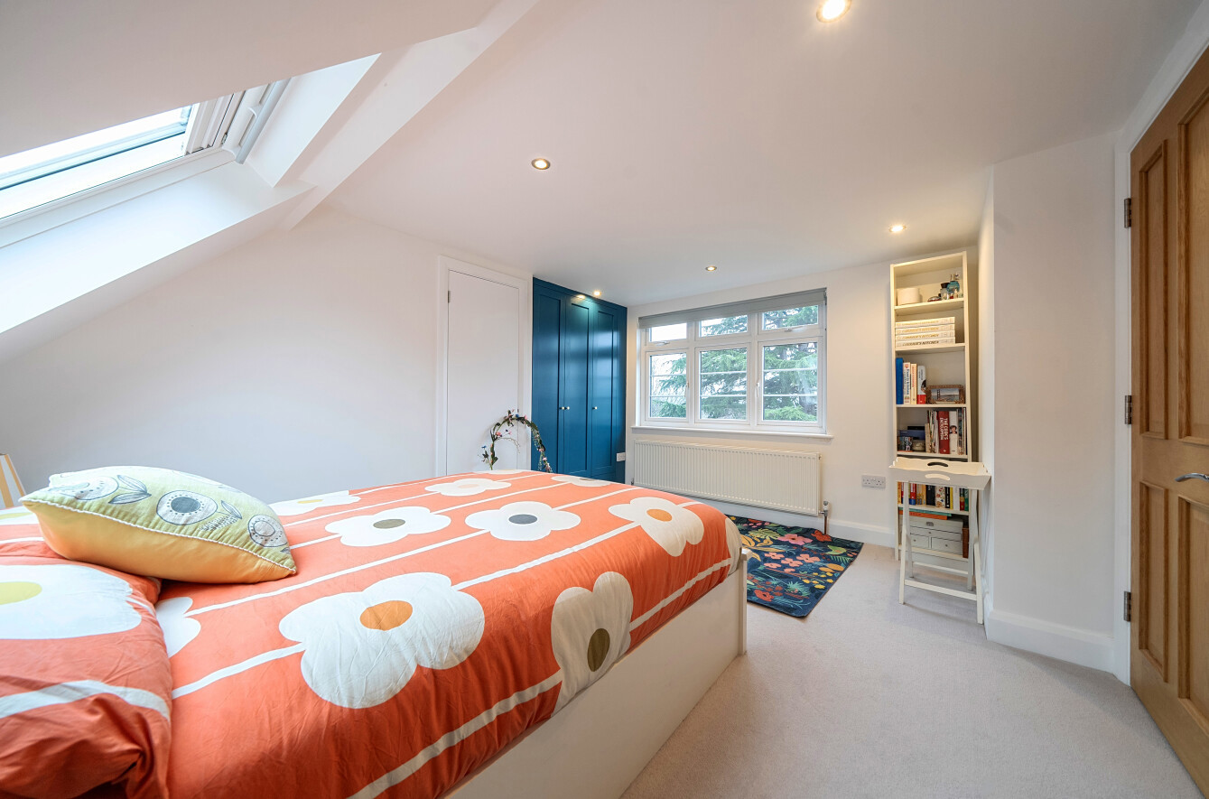 The second floor provides two further double bedrooms, both benefiting from eaves storage, and a shower room, making it an ideal principal bedroom suite or private floor for older children or guests.