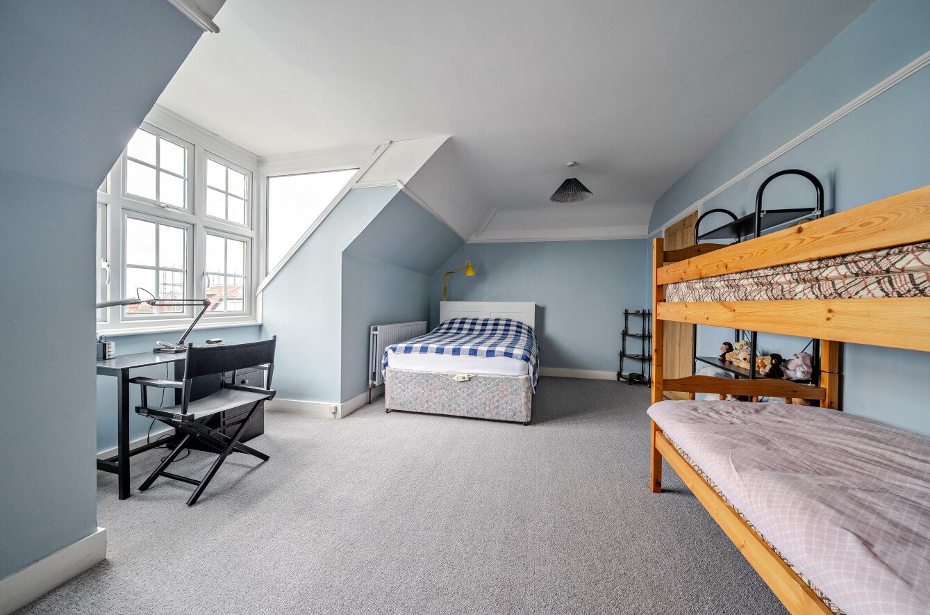 The second floor adds further flexibility, offering two additional bedrooms and extensive eaves storage — ideal for teenagers, guests, studio space or home offices. Of particular historical interest are the cellar rooms, which were converted into a cinema and bar area in the 1920’s a rare and fascinating feature that adds genuine provenance to this remarkable home.