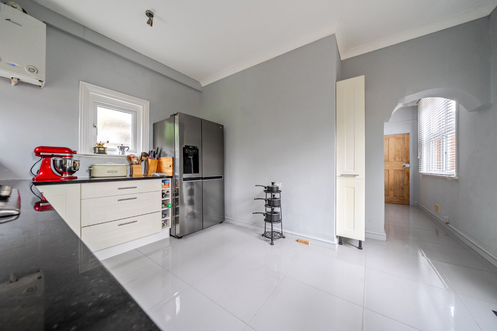 The principal reception room and secondary reception both enjoy excellent dimensions and natural light, while the breakfast room connects conveniently to the kitchen, creating a practical yet traditional layout.