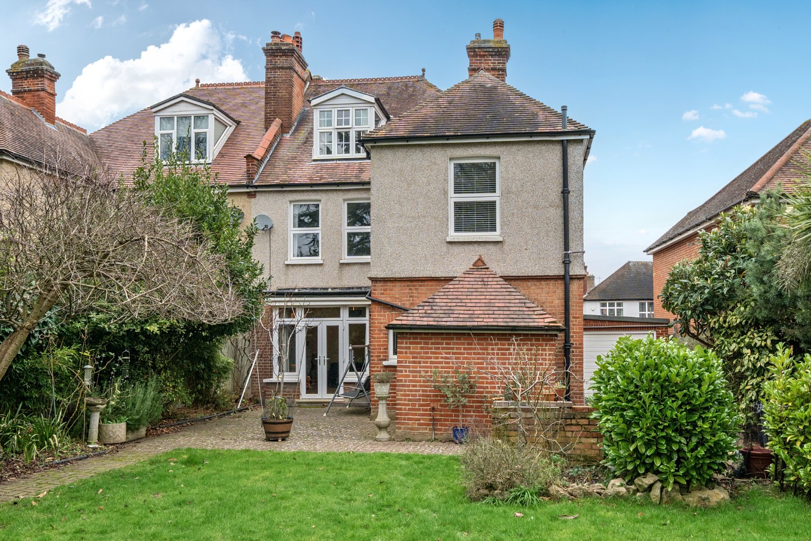 Externally, the property continues to impress. The rear garden enjoys a desirable southerly aspect and offers a high degree of privacy, mature planting and expansive lawned areas with a log cabin summer house. The plot, extending to approximately 0.2 acres provides clear scope for further extension or enhancement (subject to planning permission).