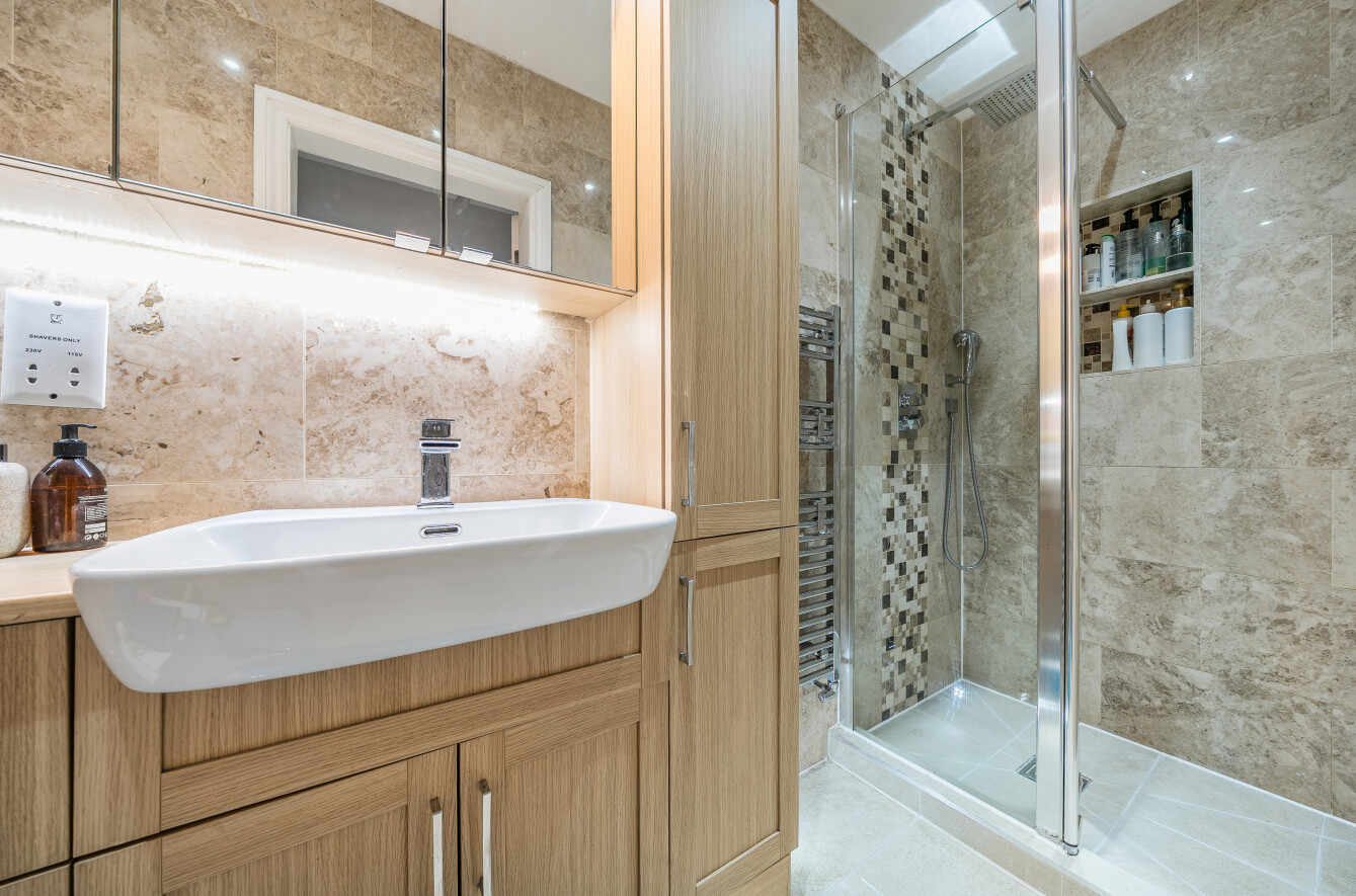 On the first floor are three well-proportioned bedrooms, all filled with natural light and finished in neutral tones, alongside a generously sized family bathroom.