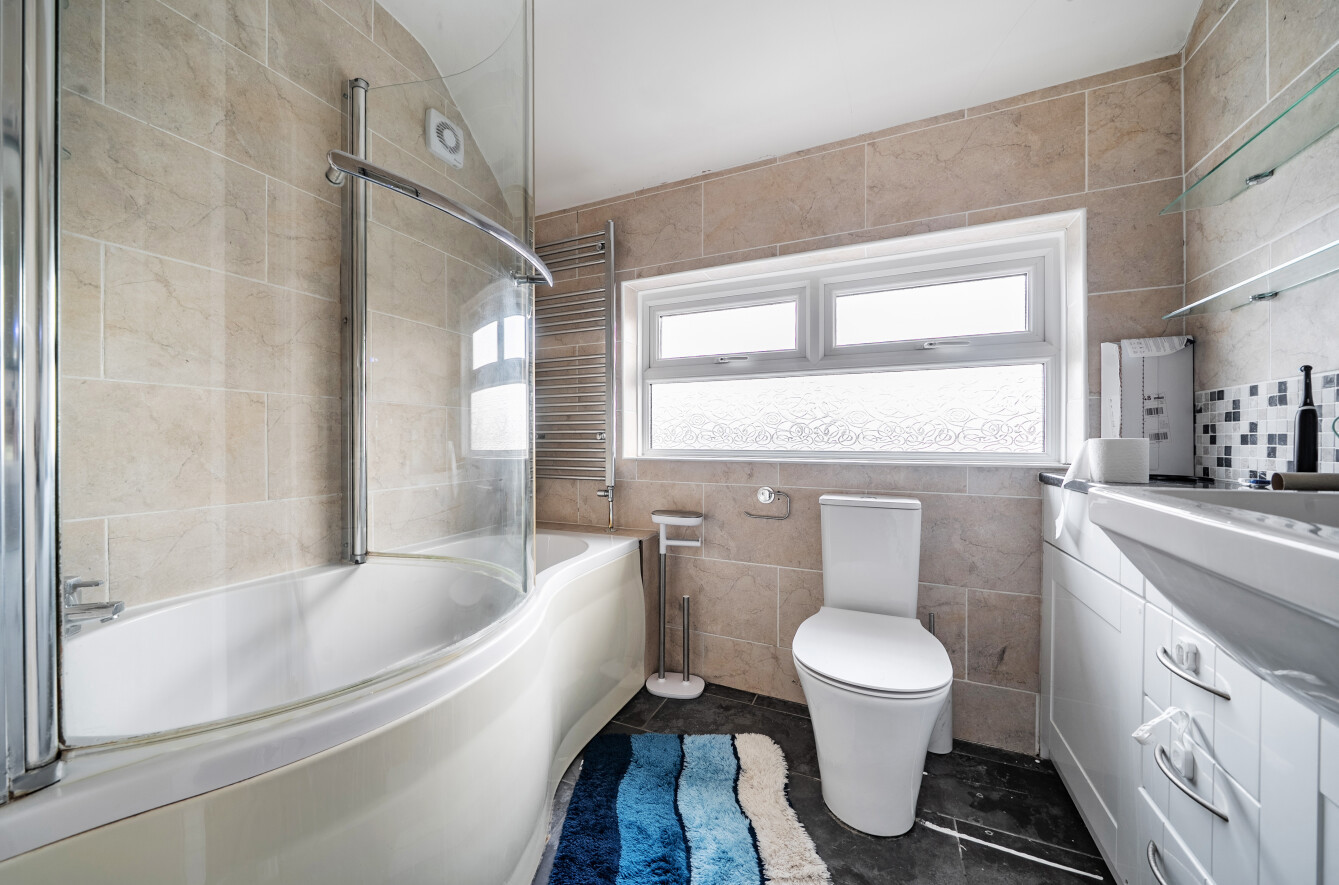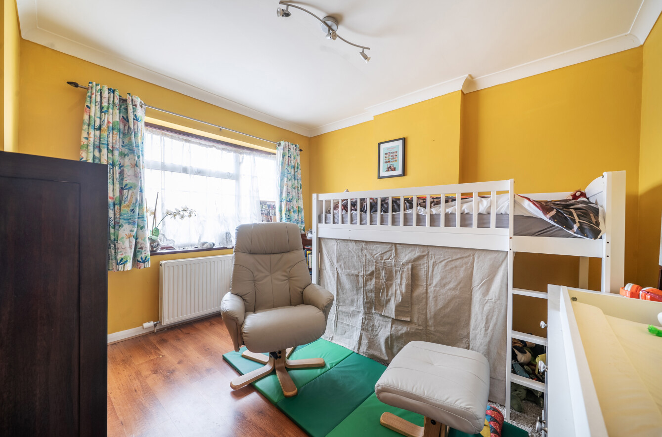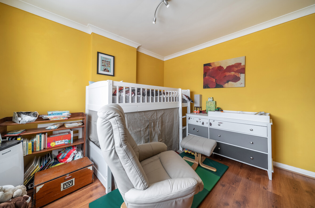 To the first floor, the property offers three well-proportioned bedrooms, including two excellent-sized doubles with built-in storage and a comfortable single bedroom.