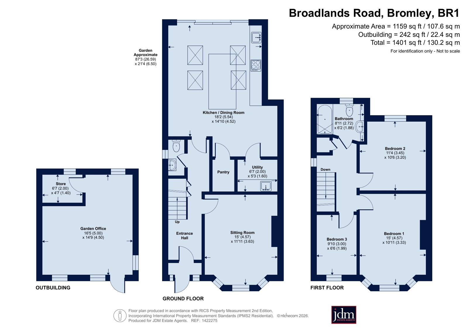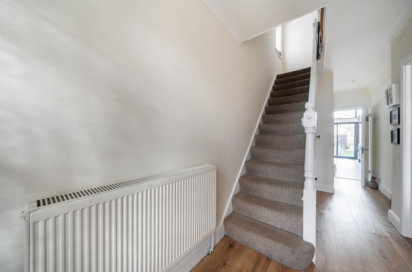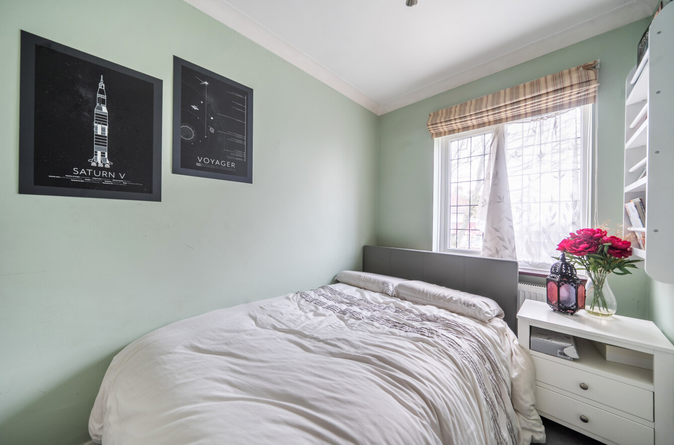 To the first floor, the property offers three well-proportioned bedrooms, including two excellent-sized doubles with built-in storage and a comfortable single bedroom.