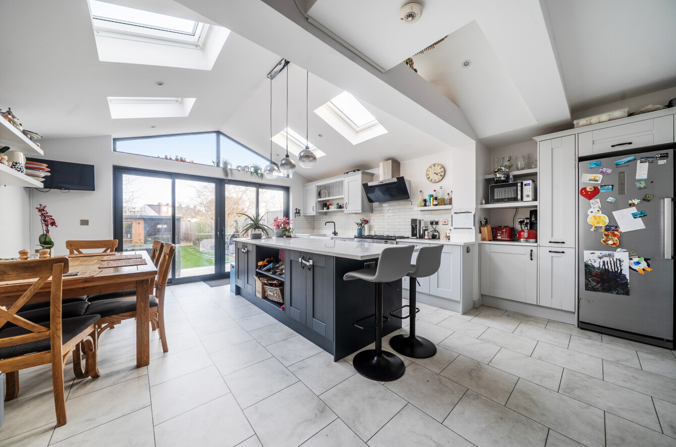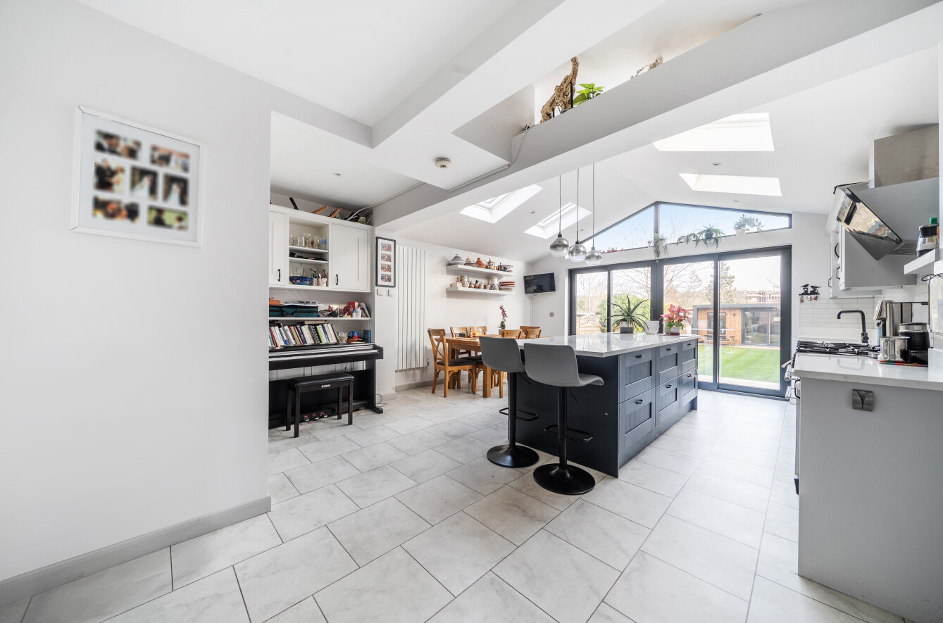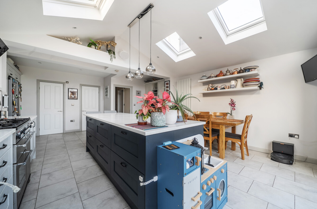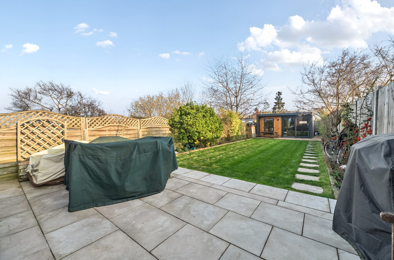 The property has a good-sized rear garden with a patio area ideal for outdoor dining and a lawned area, great for families and entertaining. The garden also boasts a modern garden room and store perfect for a home office or summer house.