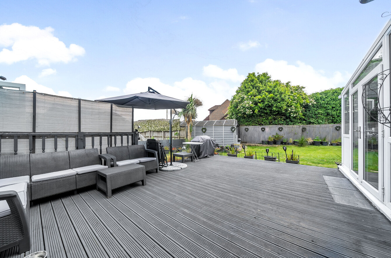 The southerly facing rear garden is mainly laid to lawn with a large decked area to the immediate rear of the property providing a secluded seating and outdoor dining area. There are also two outbuildings.