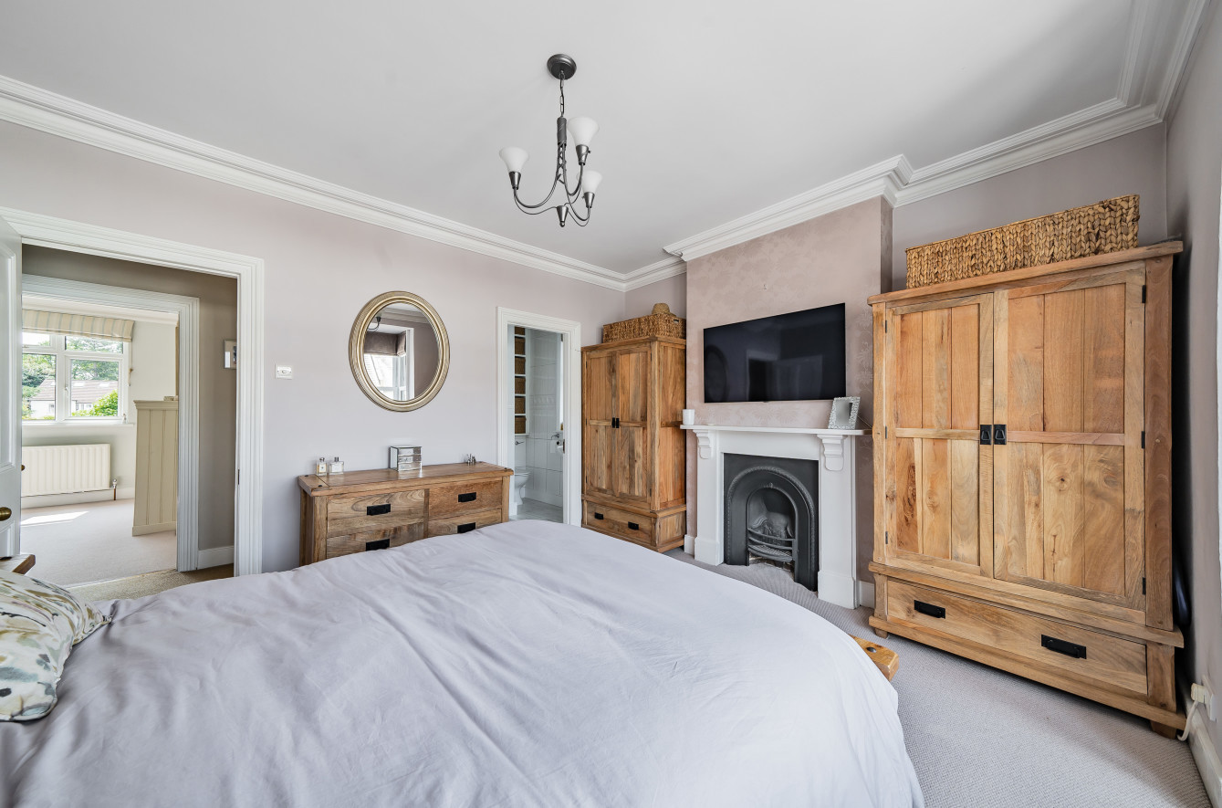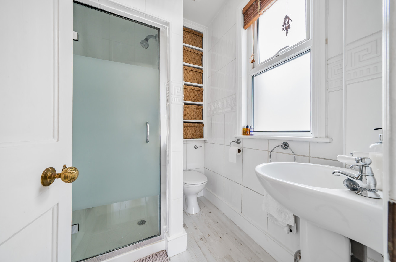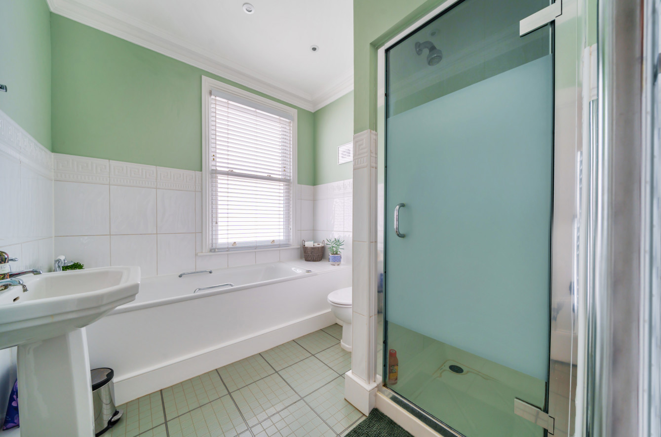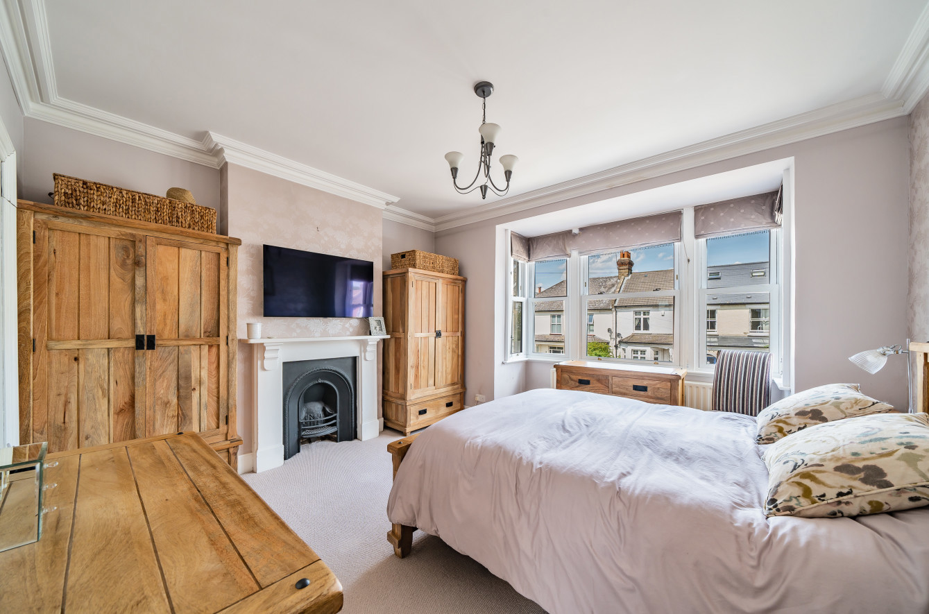 Moving to the first floor, you'll find a roomy bay-fronted Master bedroom with an en suite shower room, an attractive period fireplace, and ample space for additional furniture. Two more double bedrooms and a large family bathroom with bath and shower complete this level.