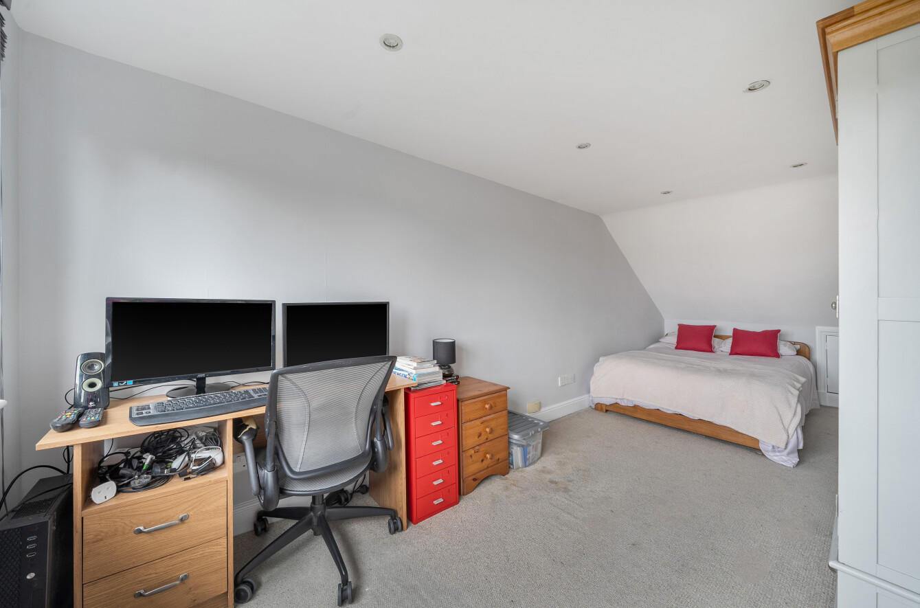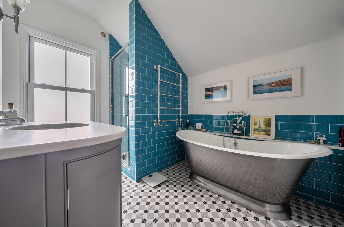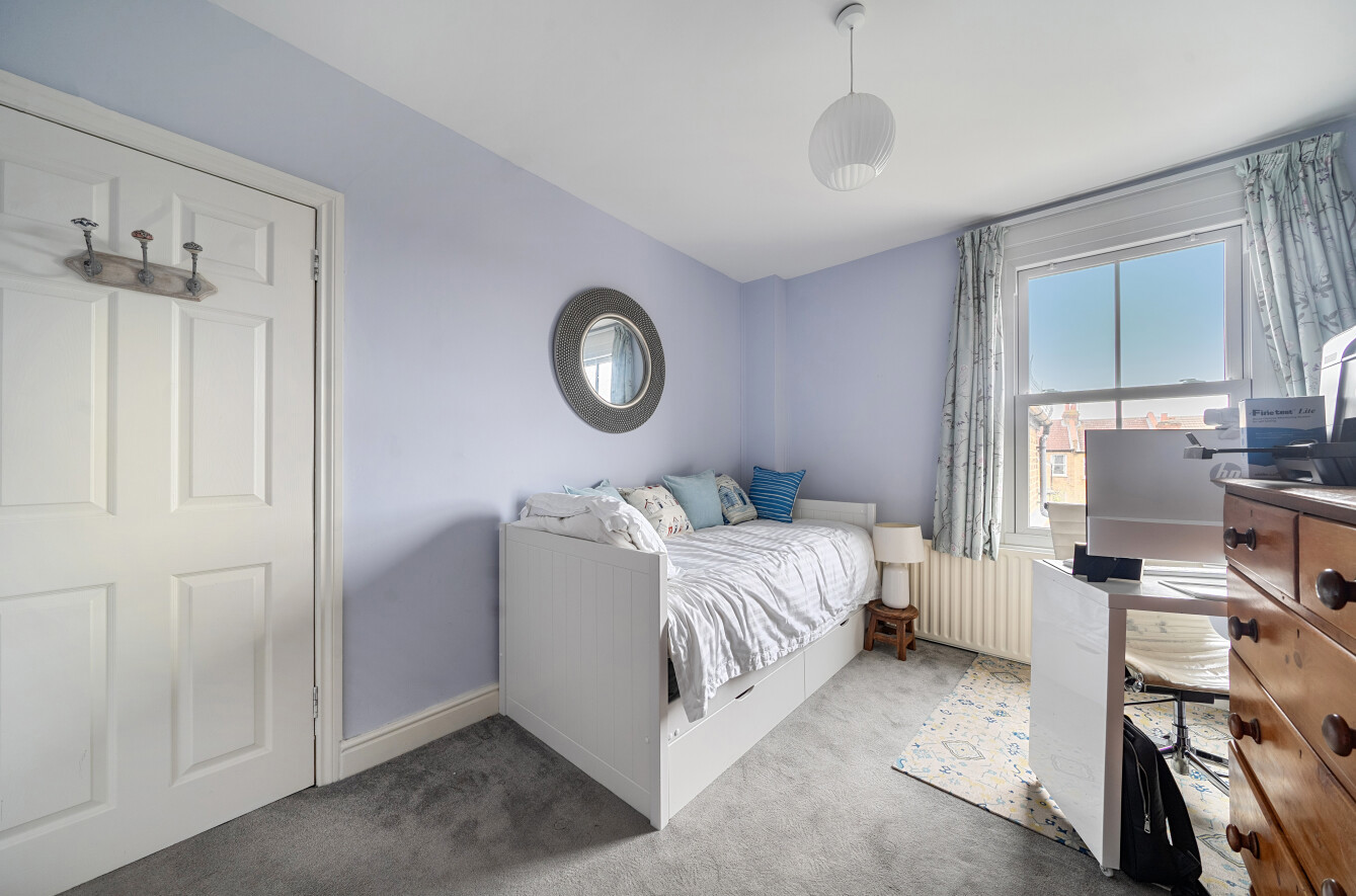 On the first floor, there are two well-proportioned double bedrooms along with a stylish family bathroom. The second floor hosts a further bedroom and shower room, offering flexible accommodation ideal for a guest room, home office, or principal suite.