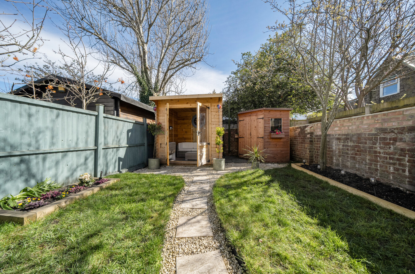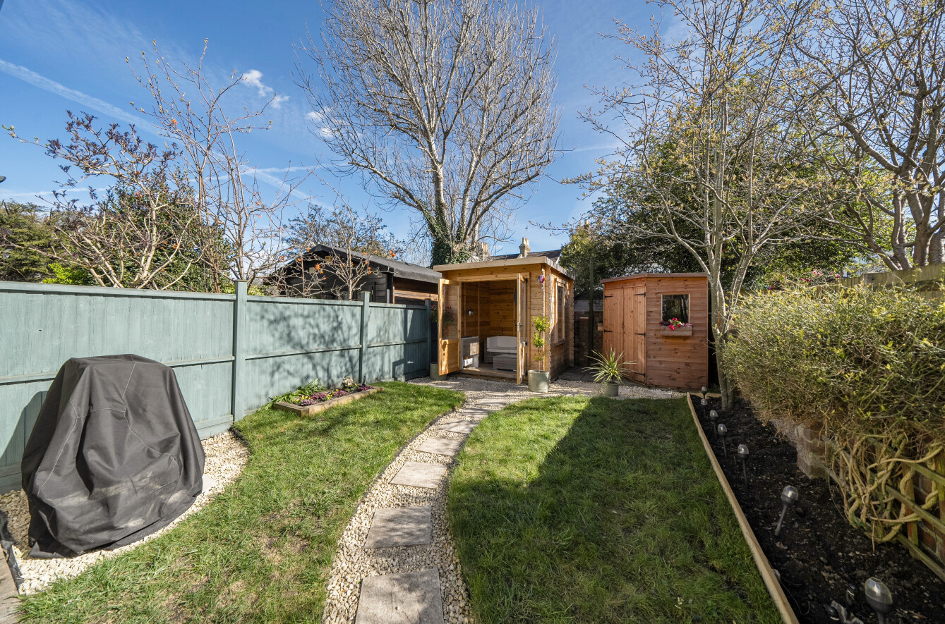 Externally, the property benefits from off-street parking to the front, gated side access, and a well-maintained and landscaped rear garden, predominantly laid to lawn with a patio area—perfect for outdoor entertaining. There is also a summerhouse and shed for garden storage.
