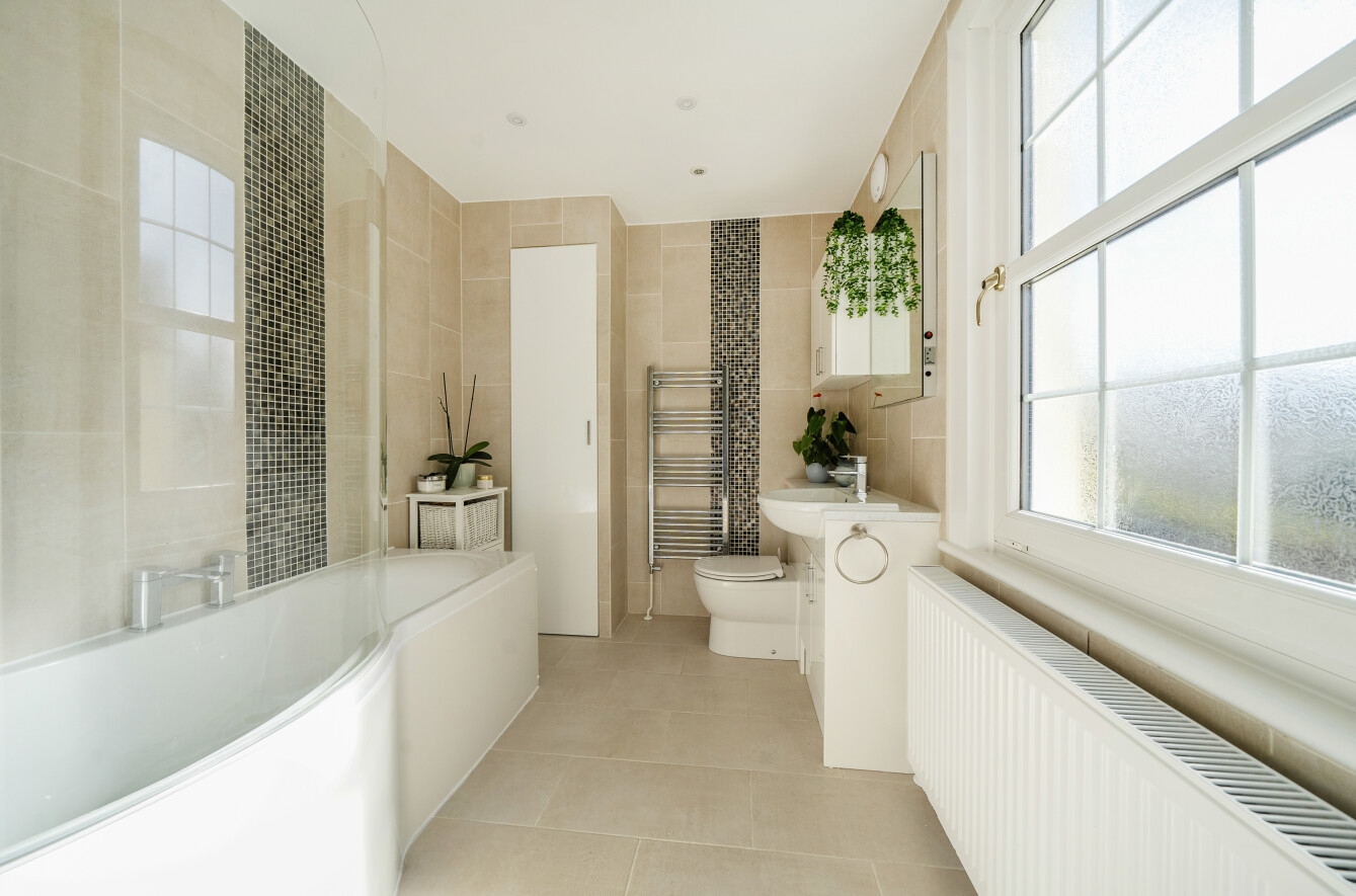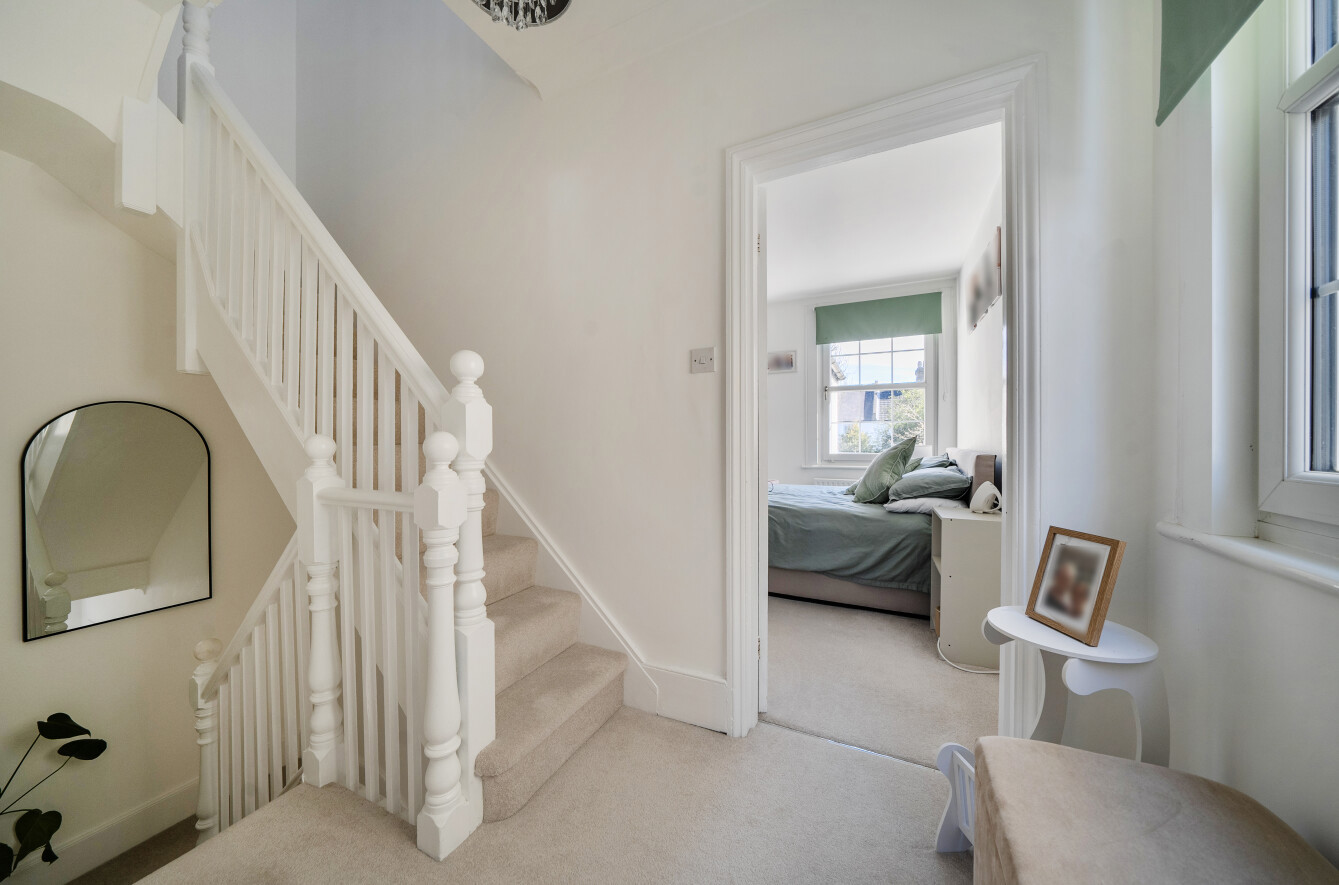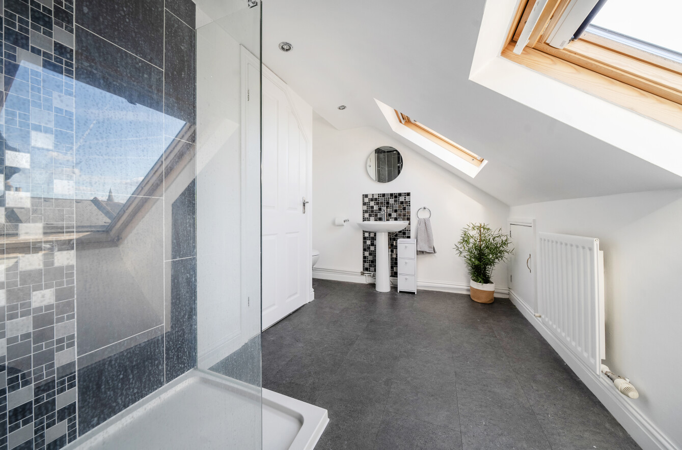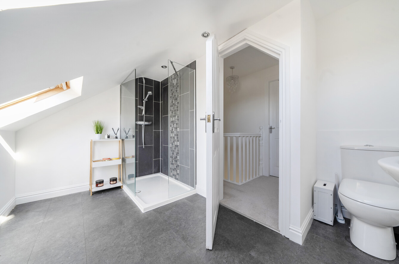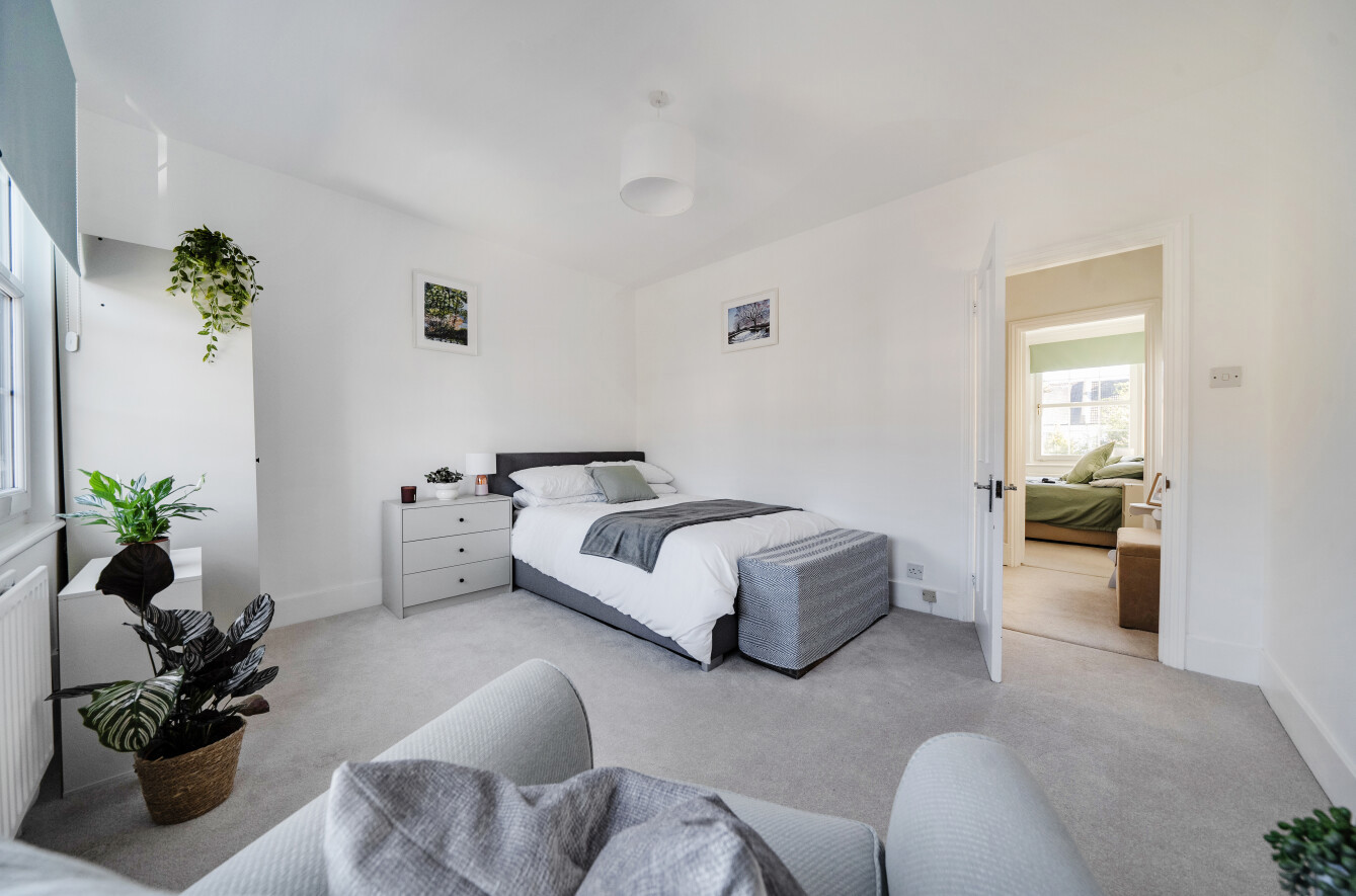 Upstairs, the first floor provides a generous principal bedroom with a stylish en suite bathroom, as well as a further well-proportioned double bedroom. The top floor features an additional double bedroom complemented by a modern shower room, making it an ideal guest suite.
