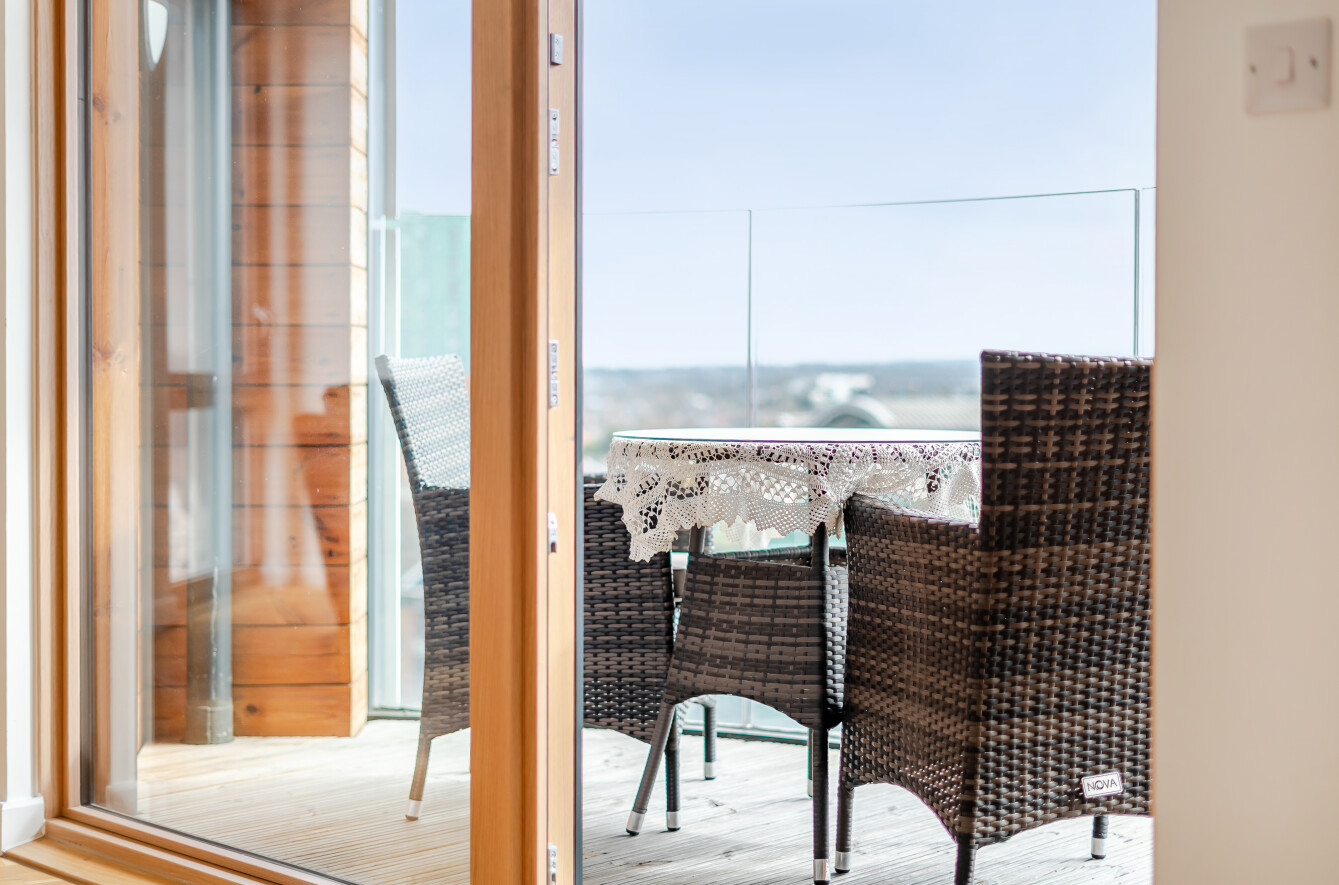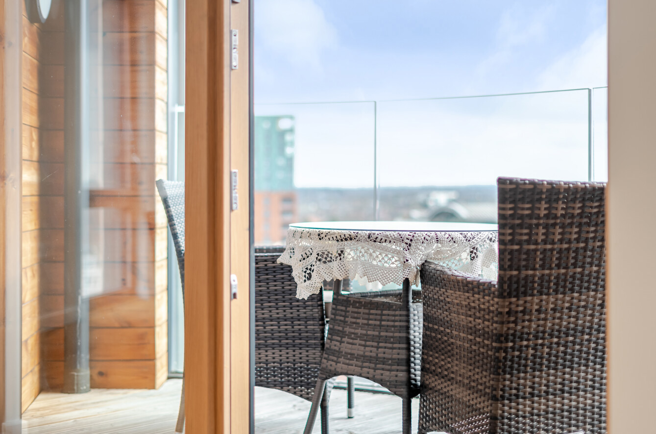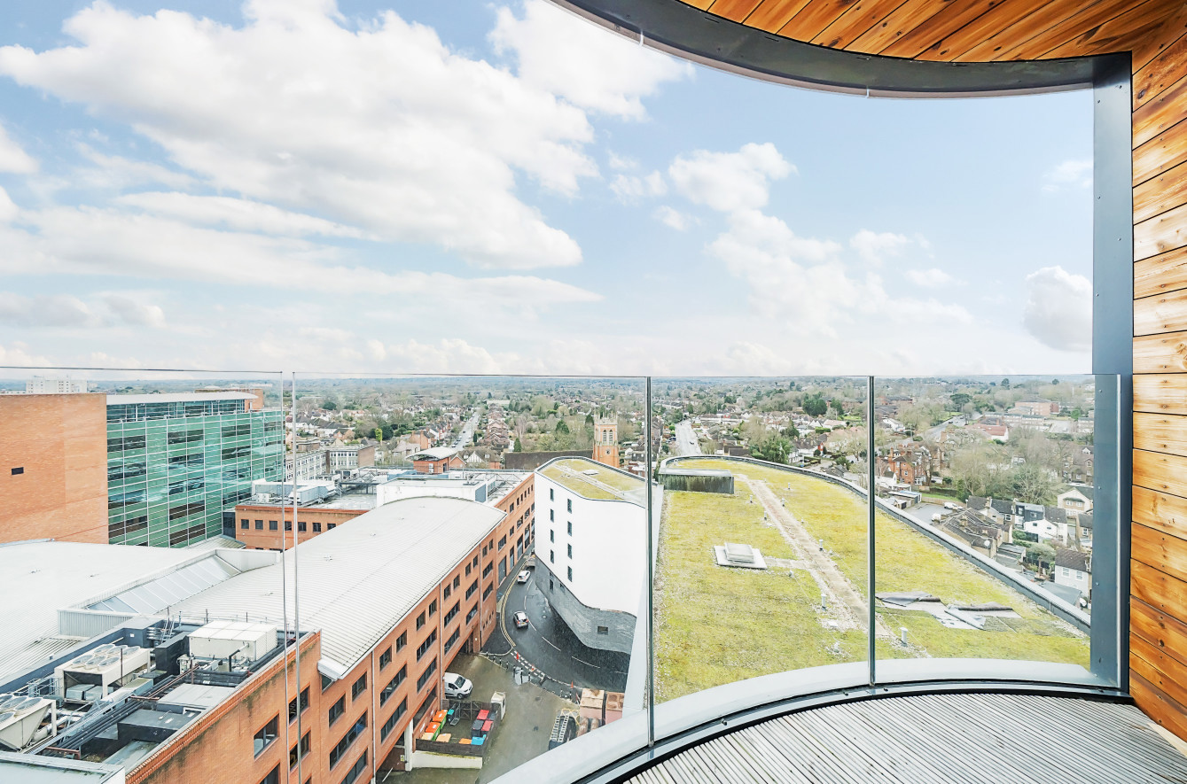 The accommodation comprises; open plan reception/kitchen with white high gloss units, access to a large terrace offering stunning views over Bromley, two double bedrooms, one with en-suite and balcony and a modern bathroom.