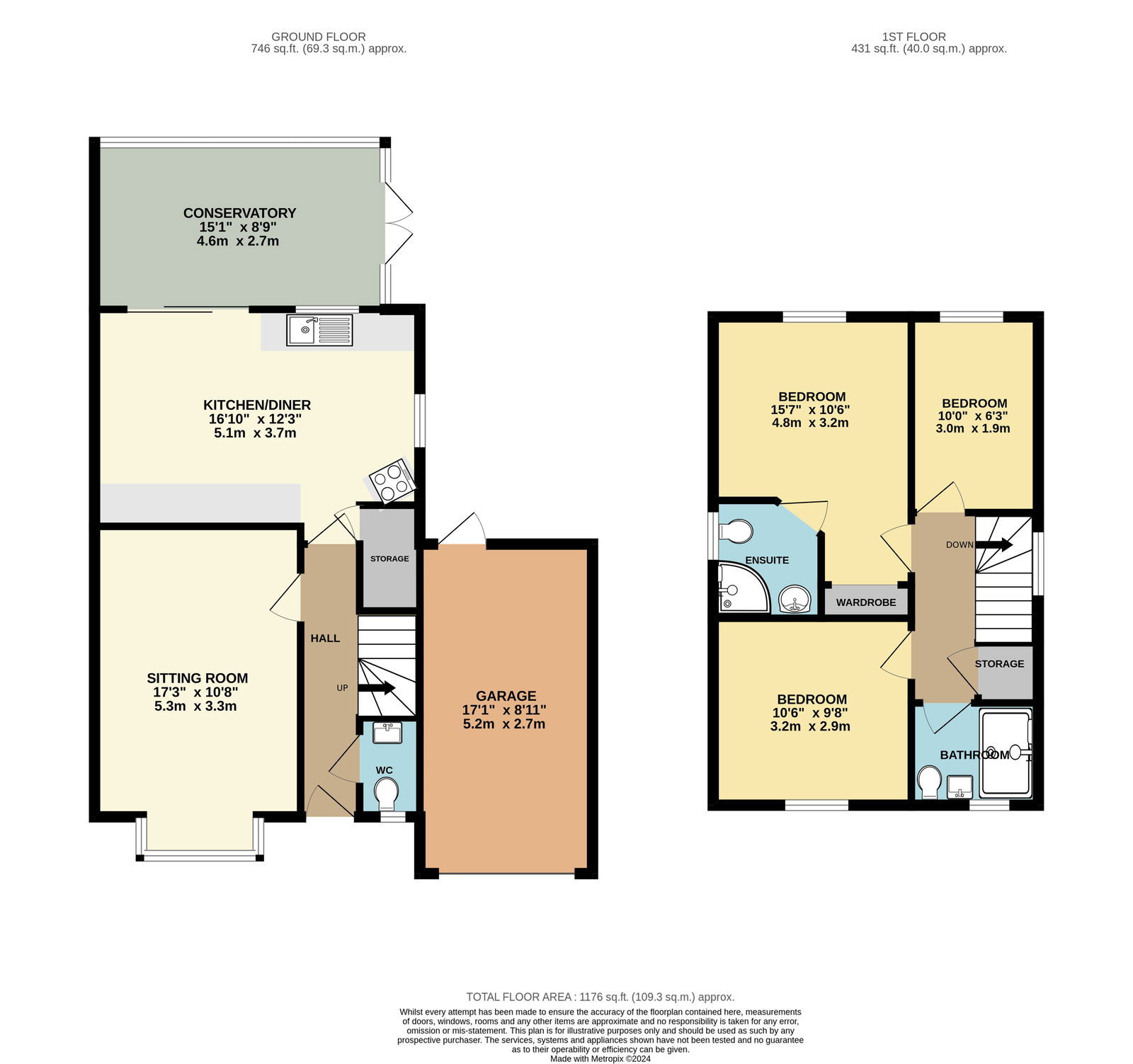 The accommodation with approximate dimensions is as follows: