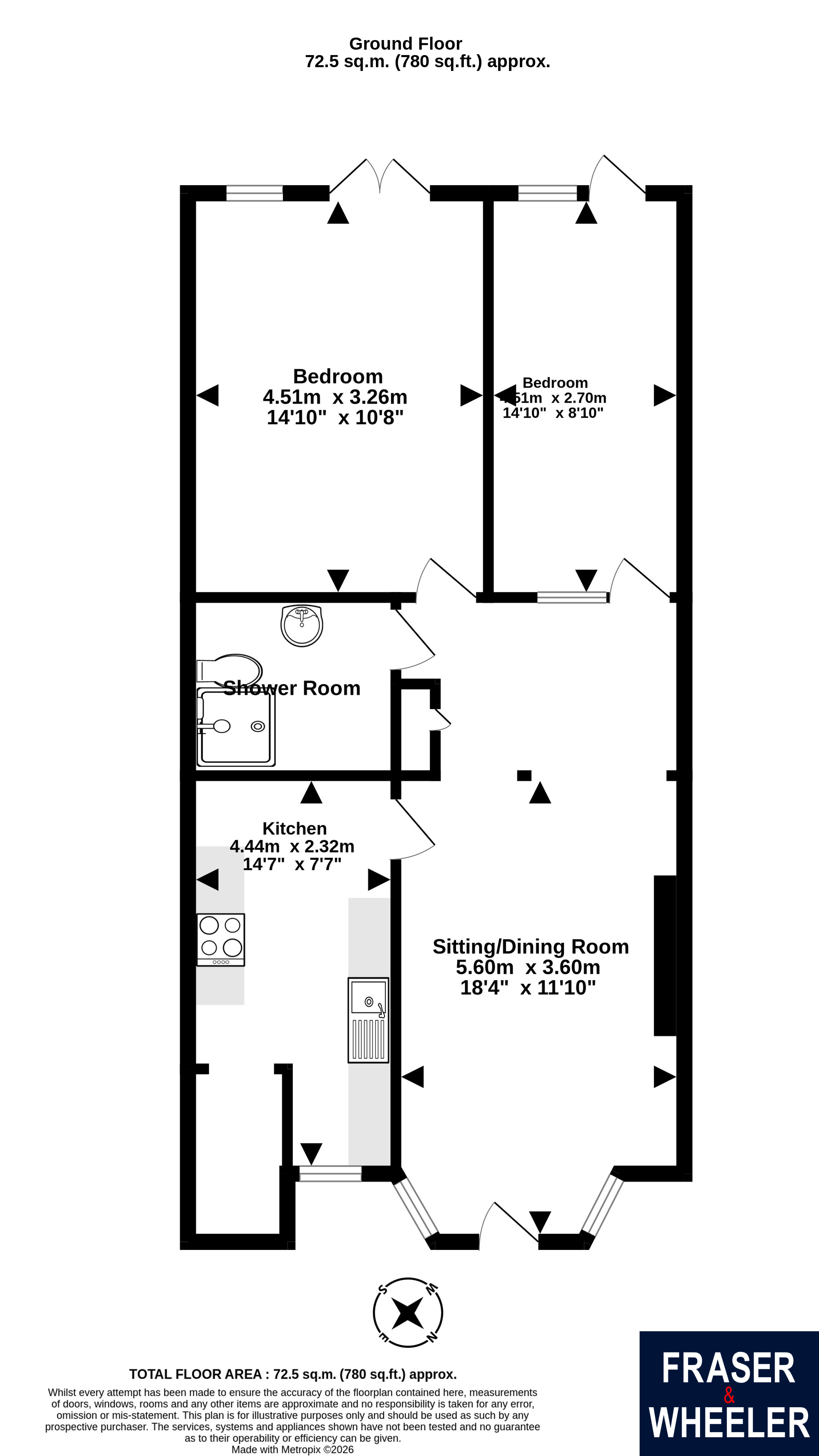 At the rear of the property are two double bedrooms both of which open on to the rear garden. The shower room is arranged as a wet room with electric shower.