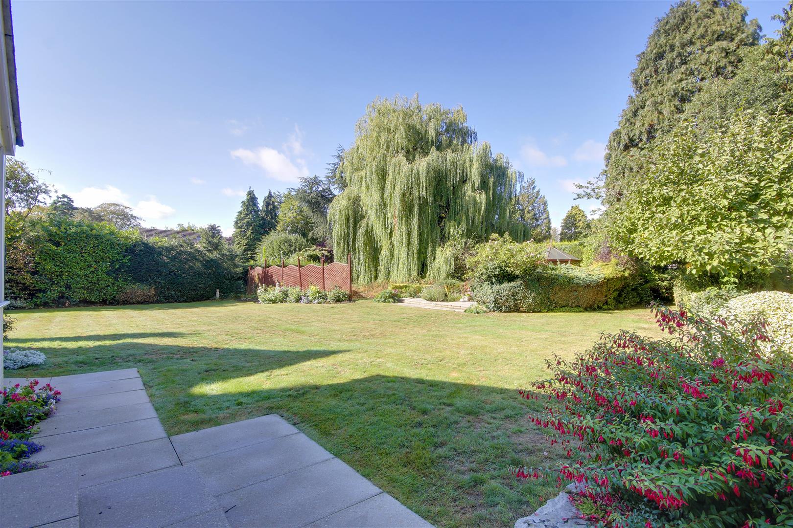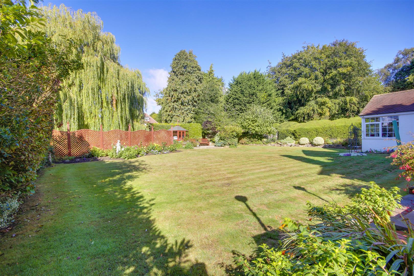 Outside - Wrought iron gates flank the entrance to the property which open to a wide gravel parking forecourt which can accommodate several vehicles. The property is well screened from the road with mature hedge and shrubbery. The lawn wraps around the front of the house and extends to one side. Directly to the rear of the house lies a paved terrace, ideal for relaxing or entertaining. An extensive lawn is bounded by mature hedges providing much seclusion and plenty of flora and shrubbery to provide areas of interest. A further rear patio is home to a summer house which looks back at the house, together with an area ideal as a vegetable plot.