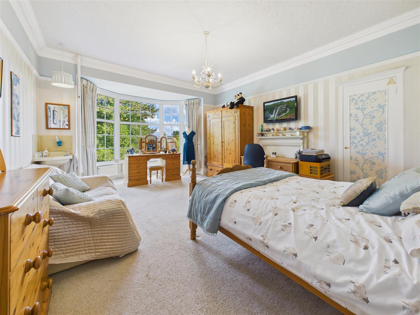 Bedroom 3 - With deep walk-in bay window to front elevation, period fire surround, cupboard to alcove, vanity wash hand basin to one corner.