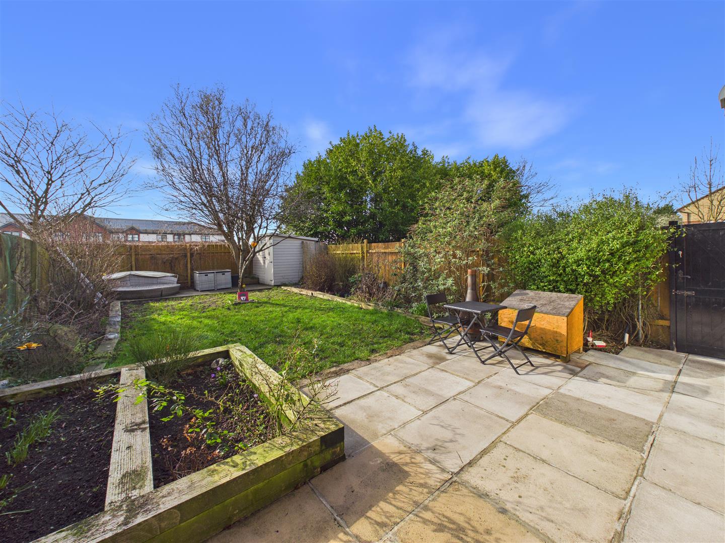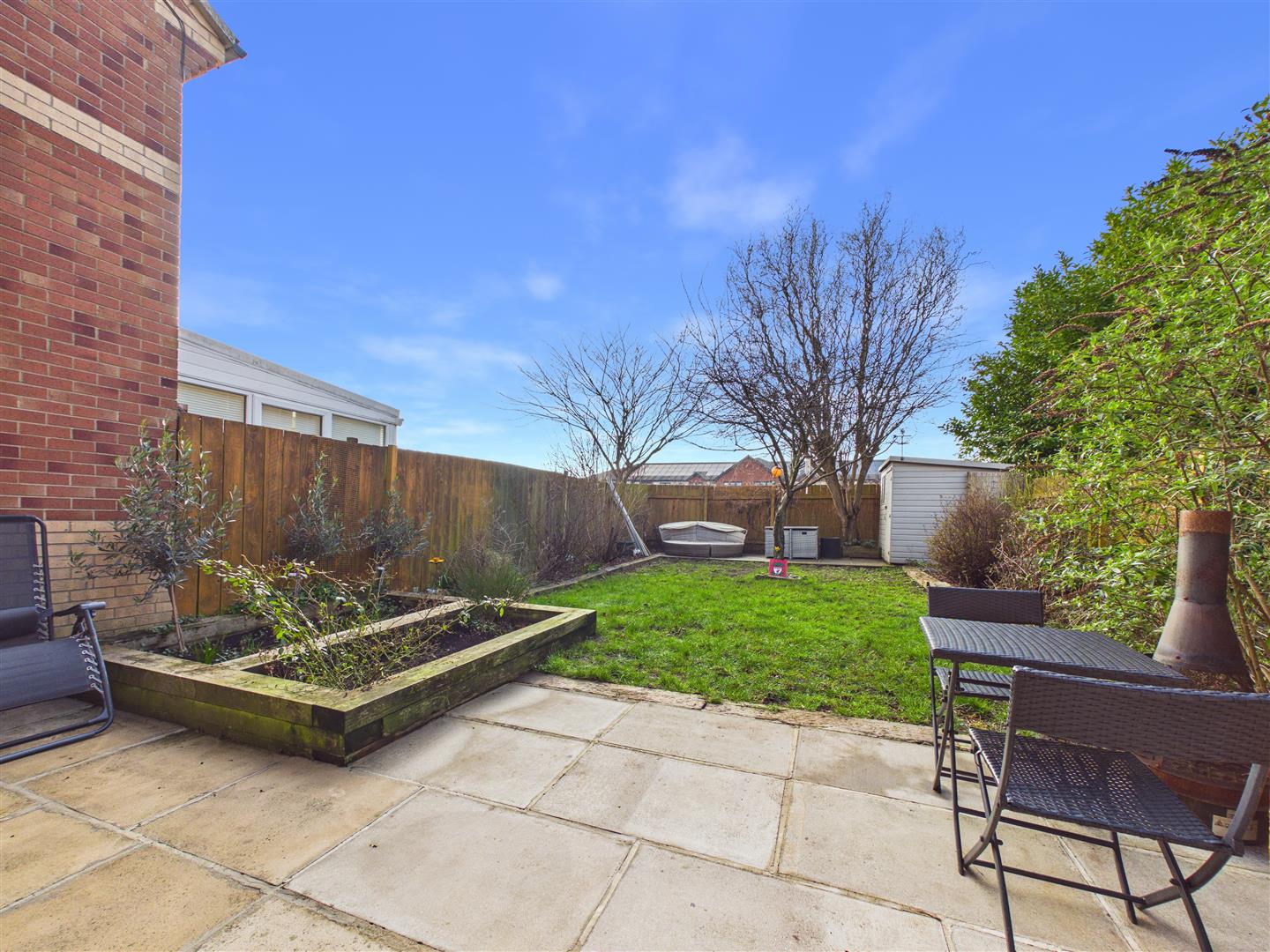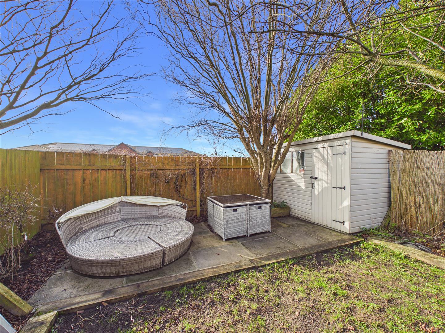 Outside - The generously sized, south-facing rear garden features a paved patio, a lawn and secondary patio area with a storage shed at the far end. A gate from the garden leads into the communal car park in which the property benefits from two allocated off-street parking spaces.