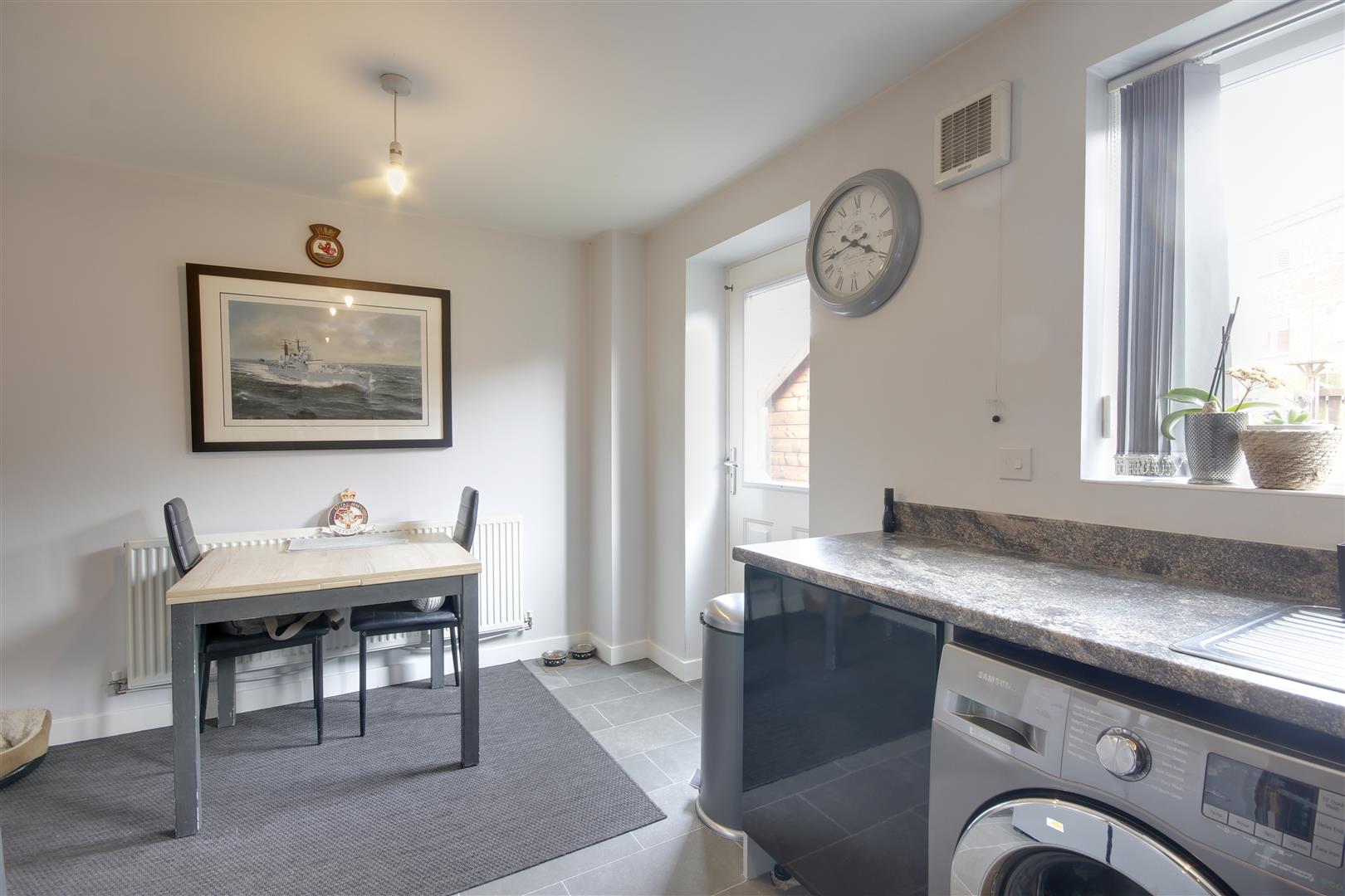 Dining Kitchen - 4.45m x 2.84m approx (14'7" x 9'4" approx) - Having a range of modern base and wall units with laminate worktops, one and a half bowl sink and drainer with mixer tap, oven and four ring gas hob. There is space for a fridge/freezer and plumbing for a washing machine. Ample space for a dining table and chairs. Window and external access door to rear.